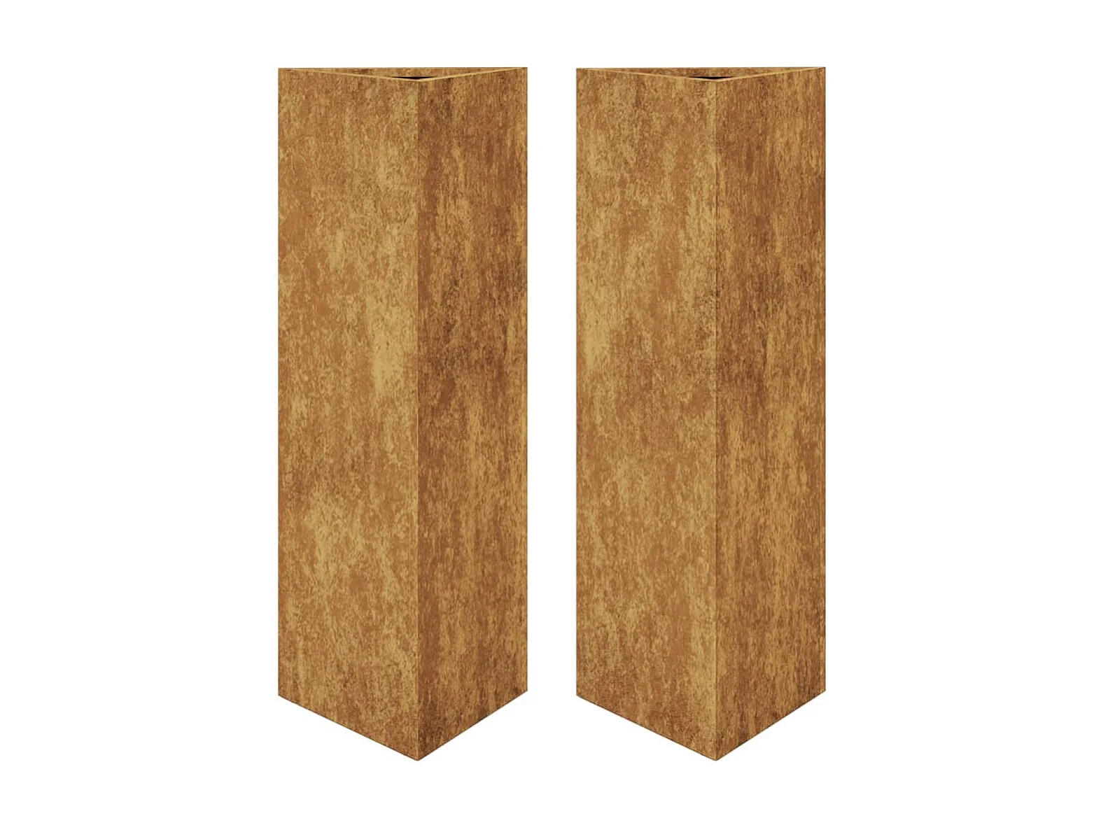 Bandeja para plantar plantas com canteiro elevado, flores, terraços de jardim, conjunto de 2 triangulares 30 x 26 x 75 cm aço corten marrom 02_0039095