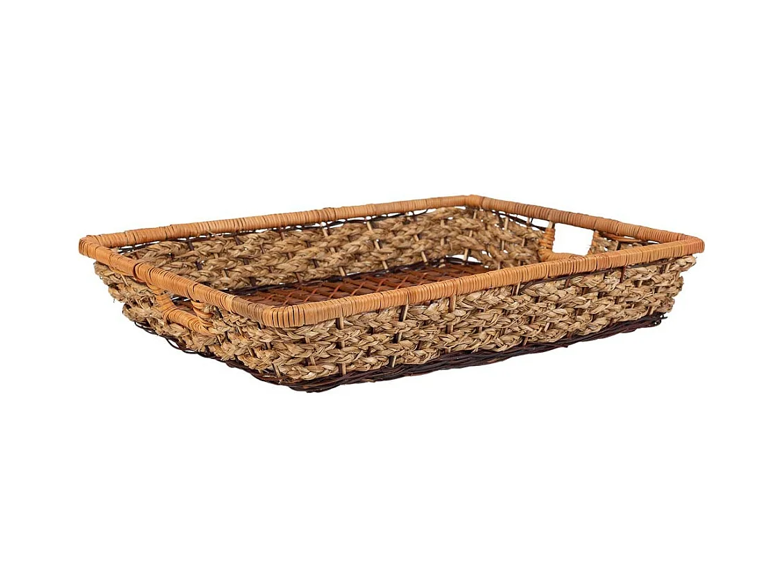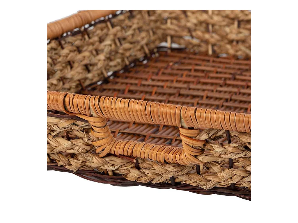 Tabuleiro em vime e madeira 38x22x9/12,5h cm