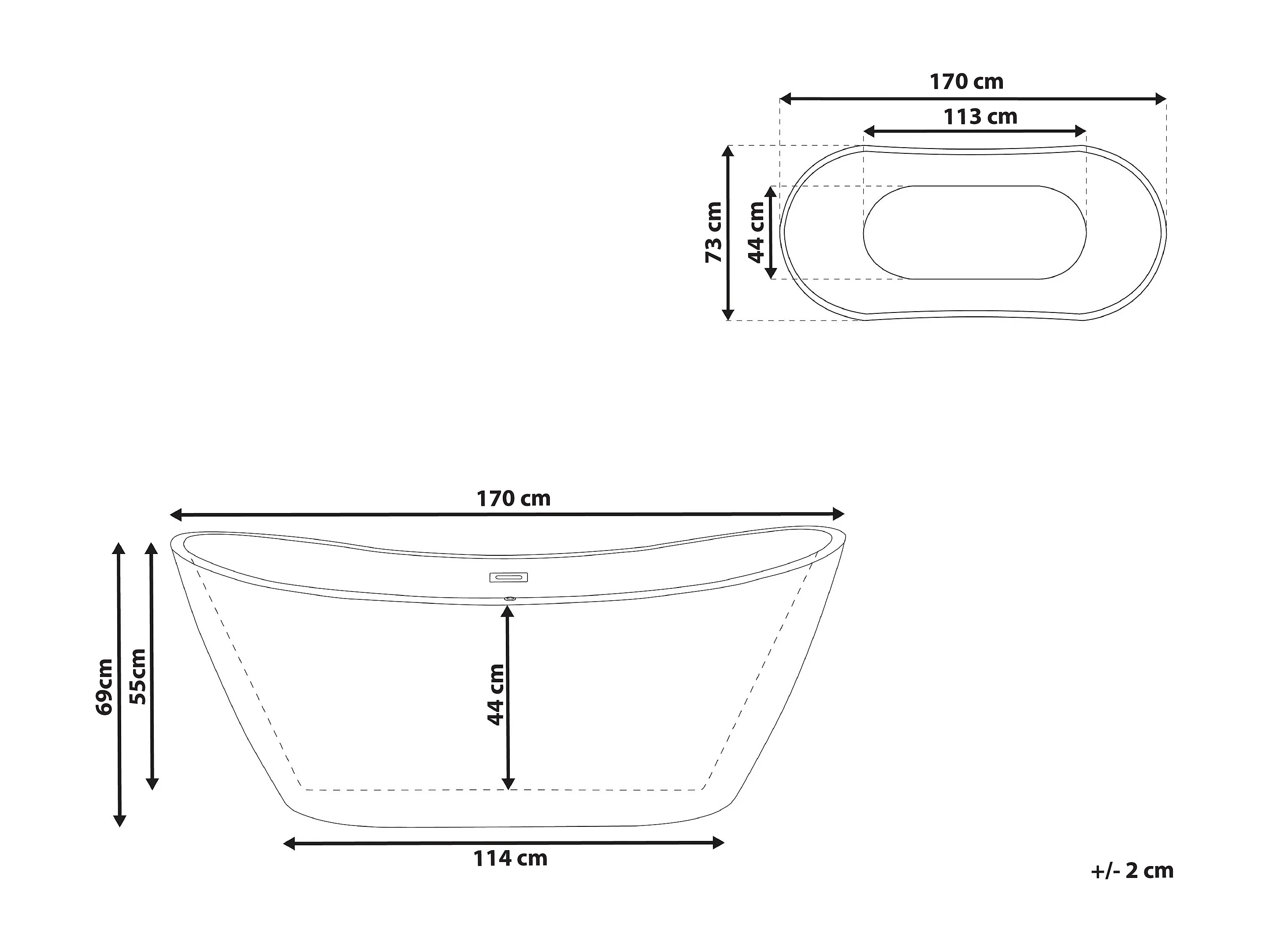 Banheira autónoma em acrílico branco 170 x 69 cm CALLAO