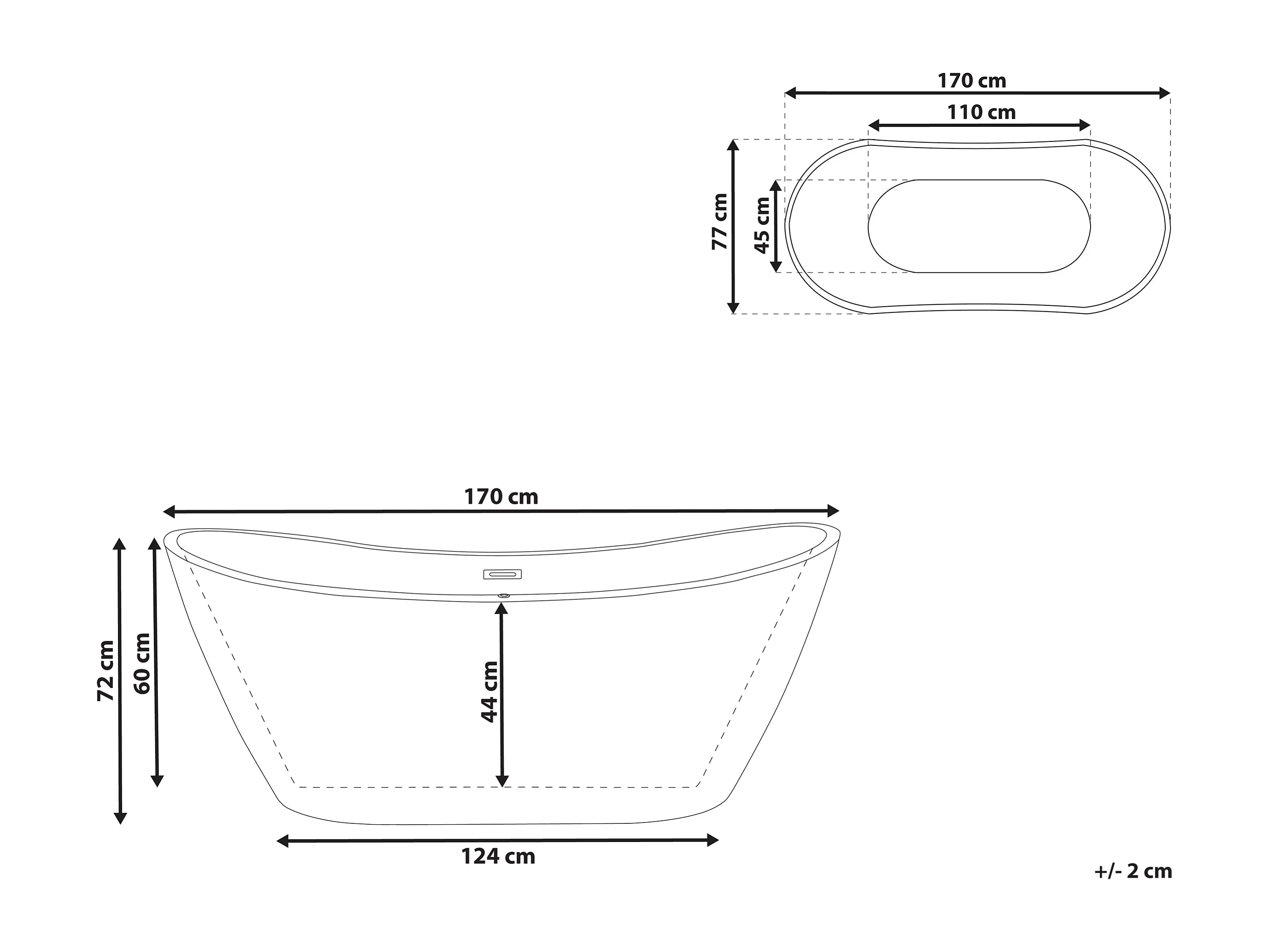 Banheira autónoma ANTIGUA 1700 x 770 mm Preto