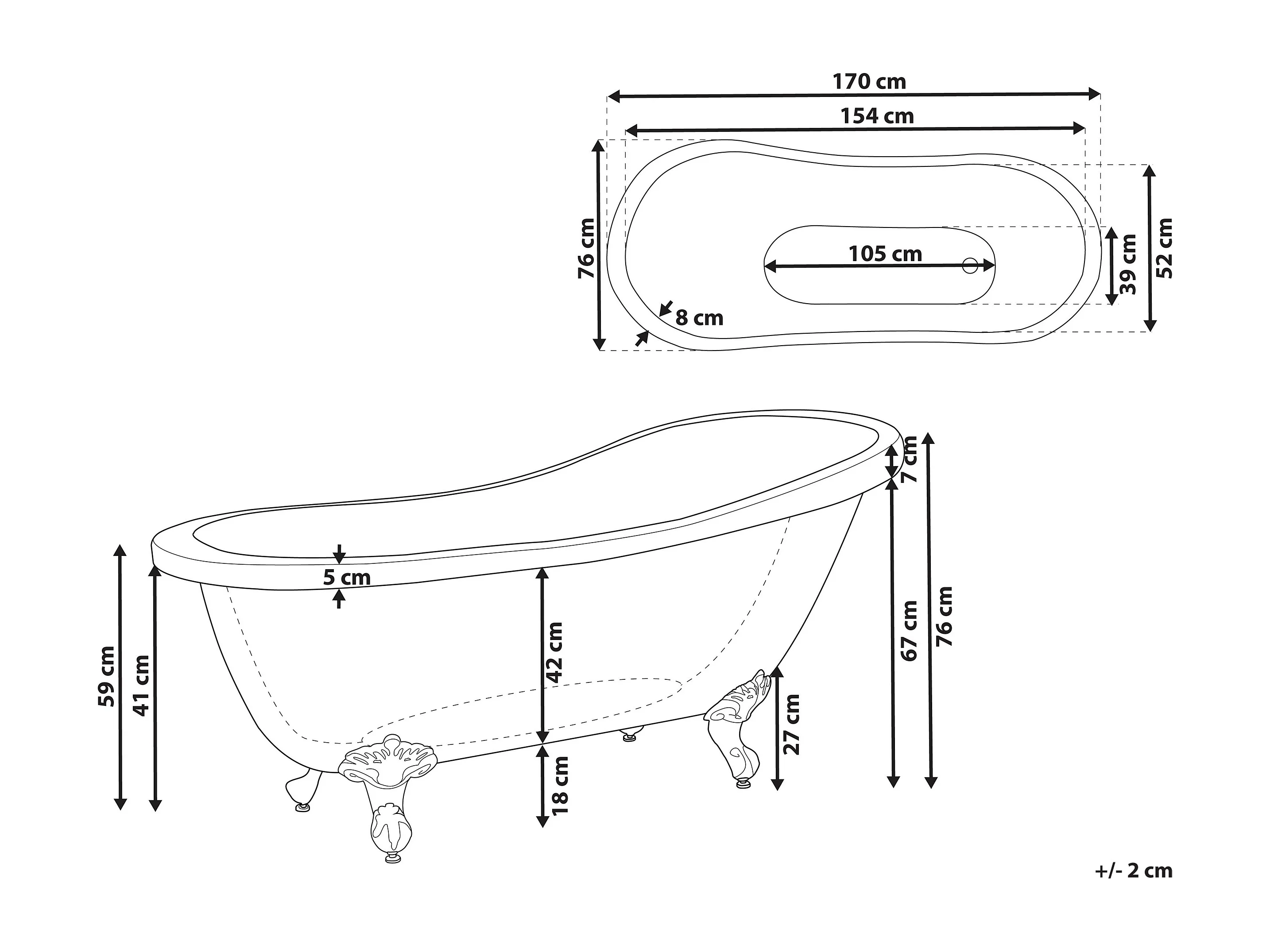 Banheira autónoma CAYMAN 1700 x 760 mm Vermelho
