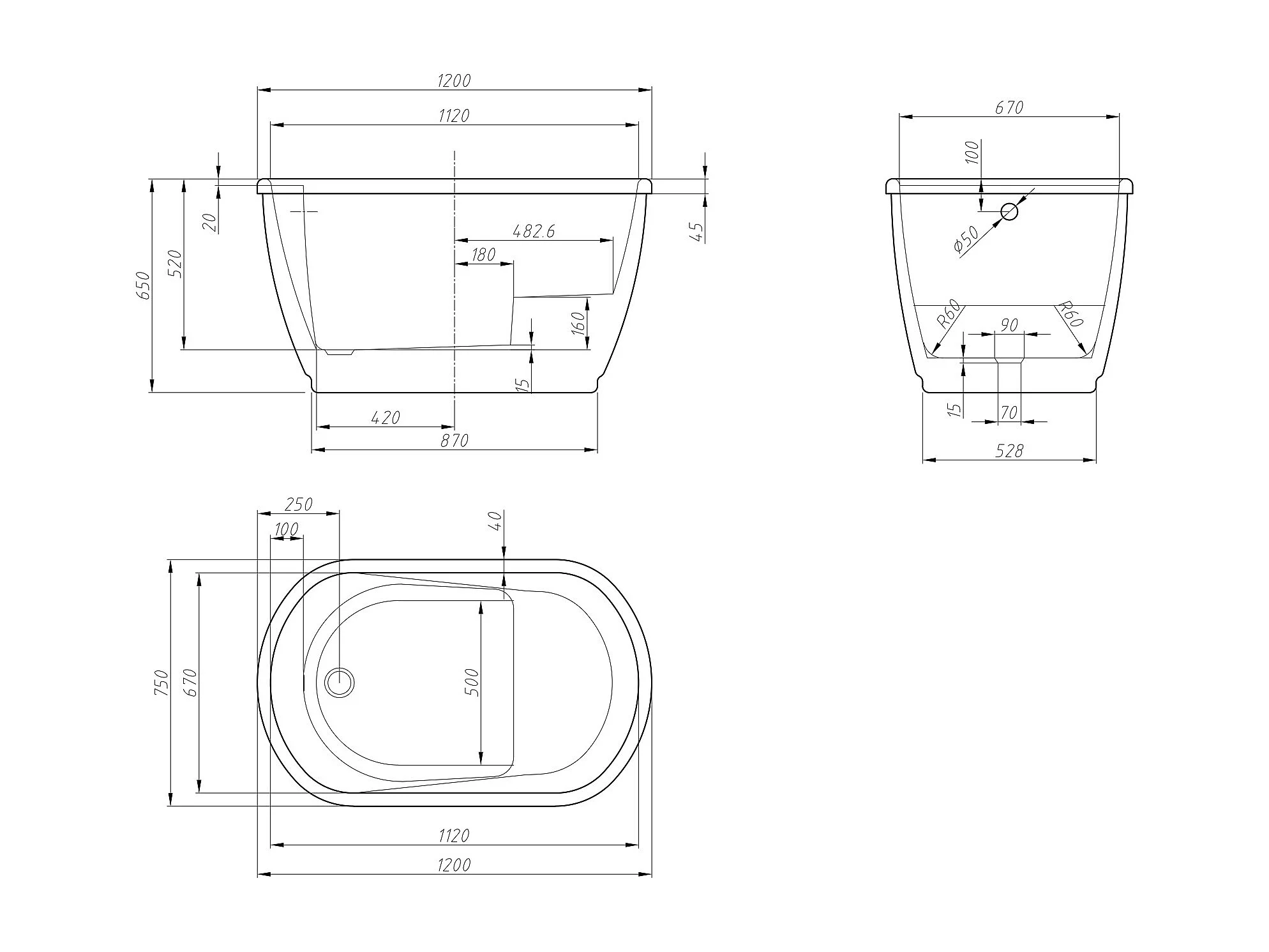 Banheira oval PICCOLA - 1 lugar - 240 L - 120*75*A65 cm - Preta