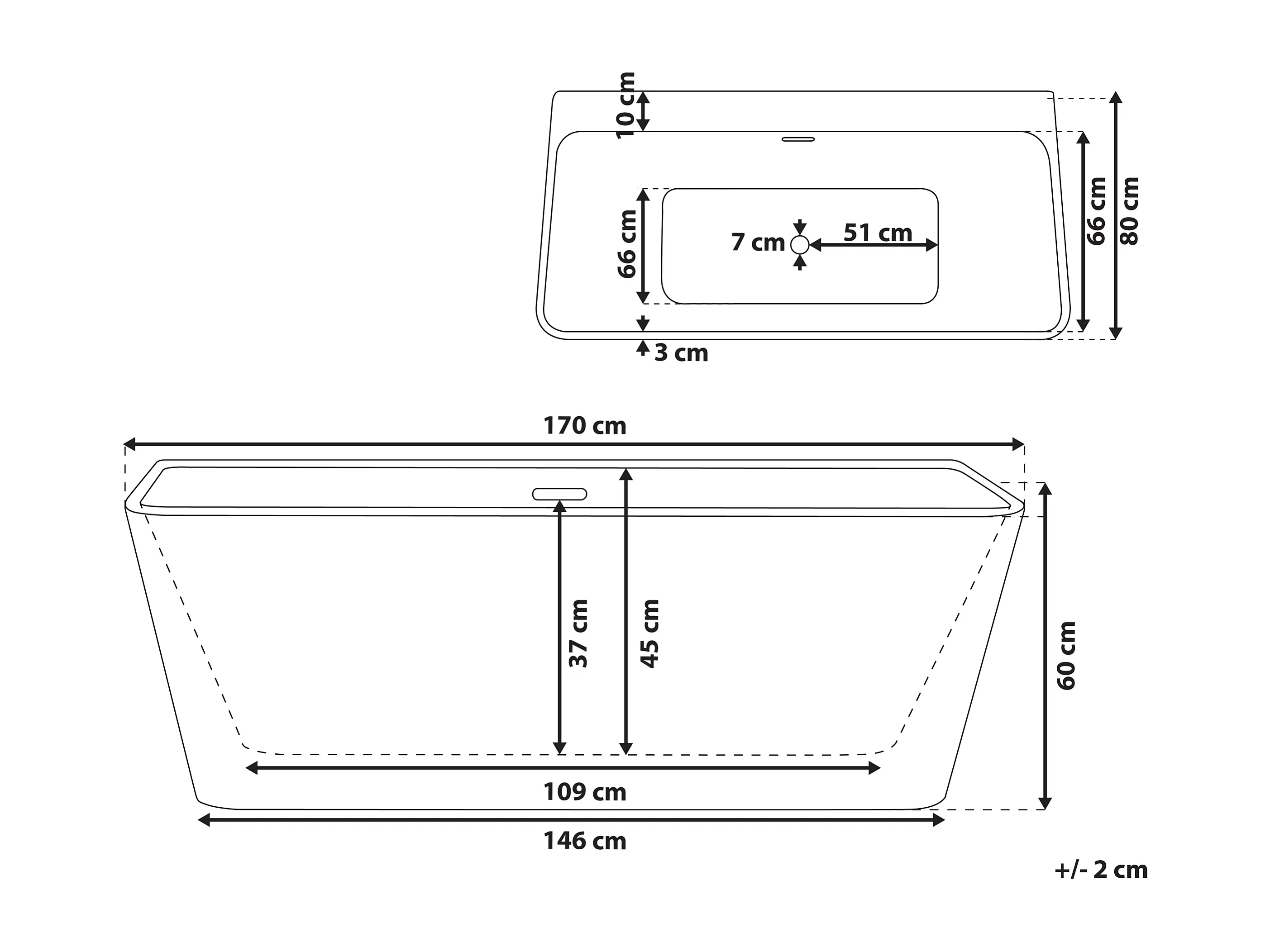Banheira HASSEL 1700 x 800 mm Preto