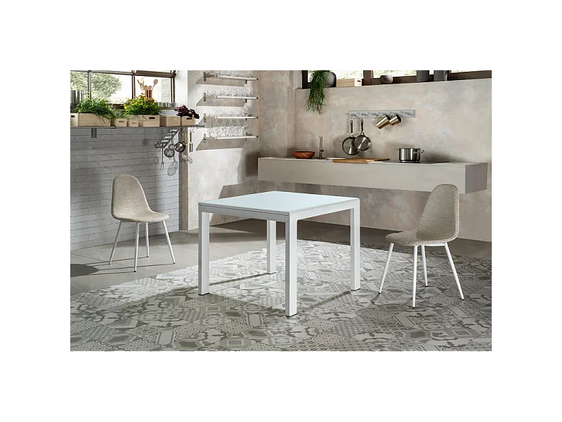 Banner - Mesa Extensível (90/163,5 x 90 cm) em Vidro Temperado Branco