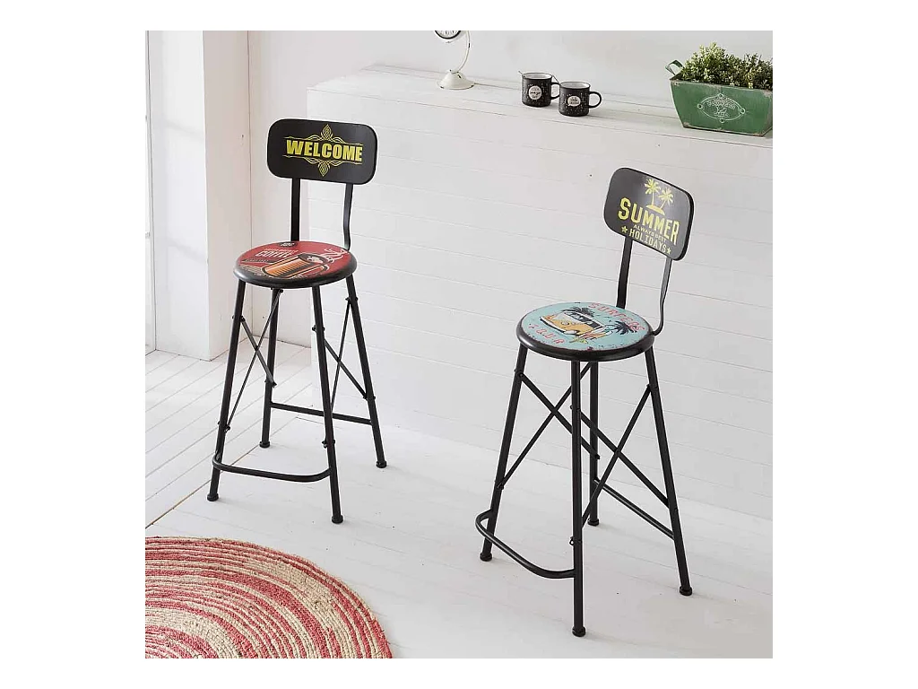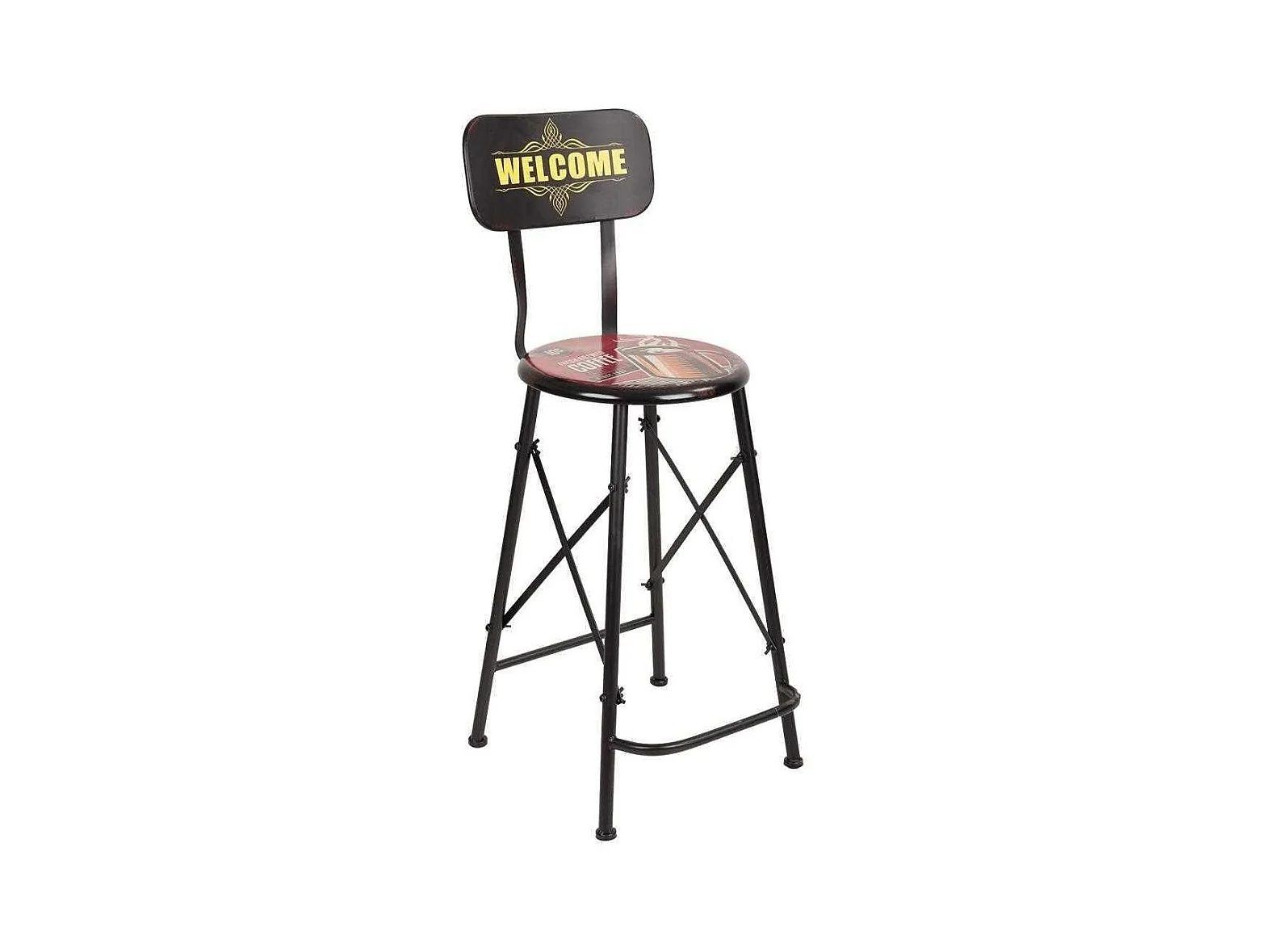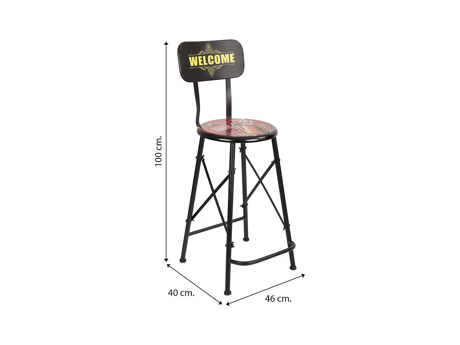 Banco de bar estilo vintage em metal, cor vermelha - dimensões 43x43xH77cm