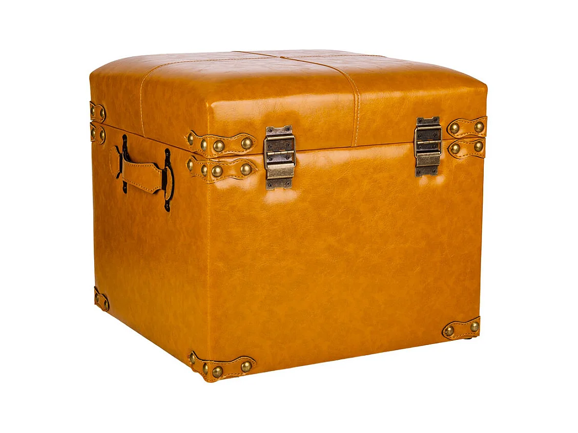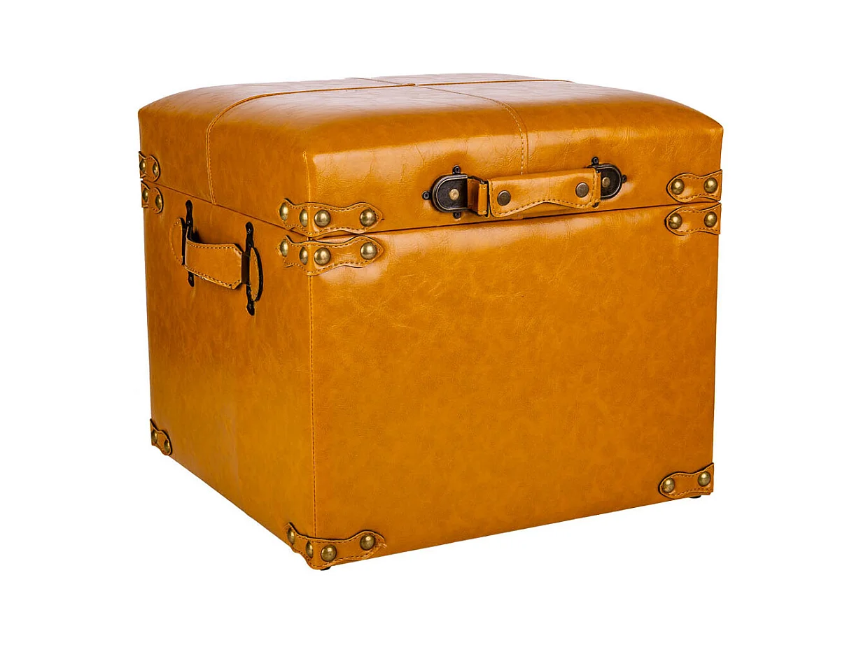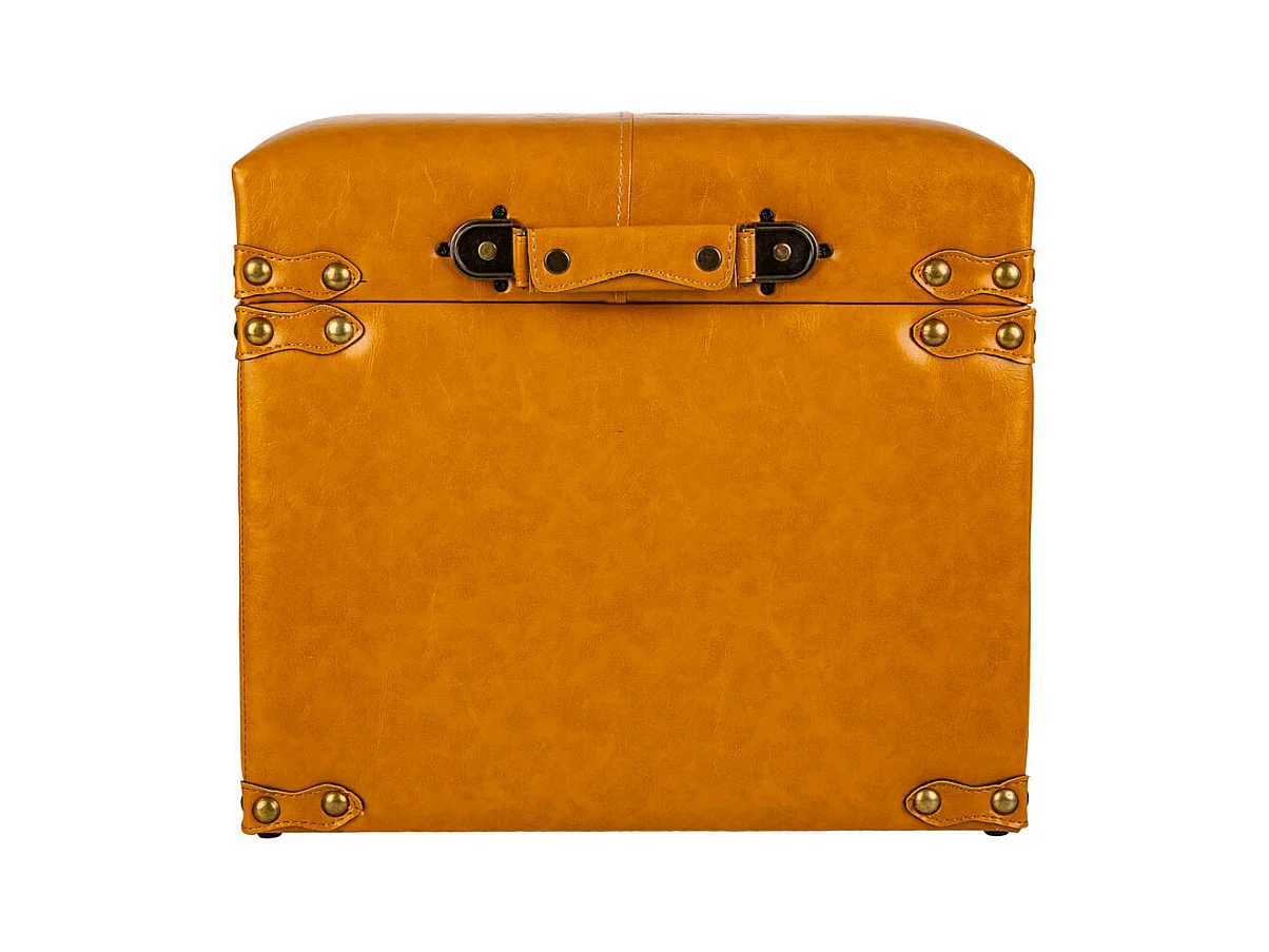 Banqueta com gaveta em couro sintético laranja 38x38x35