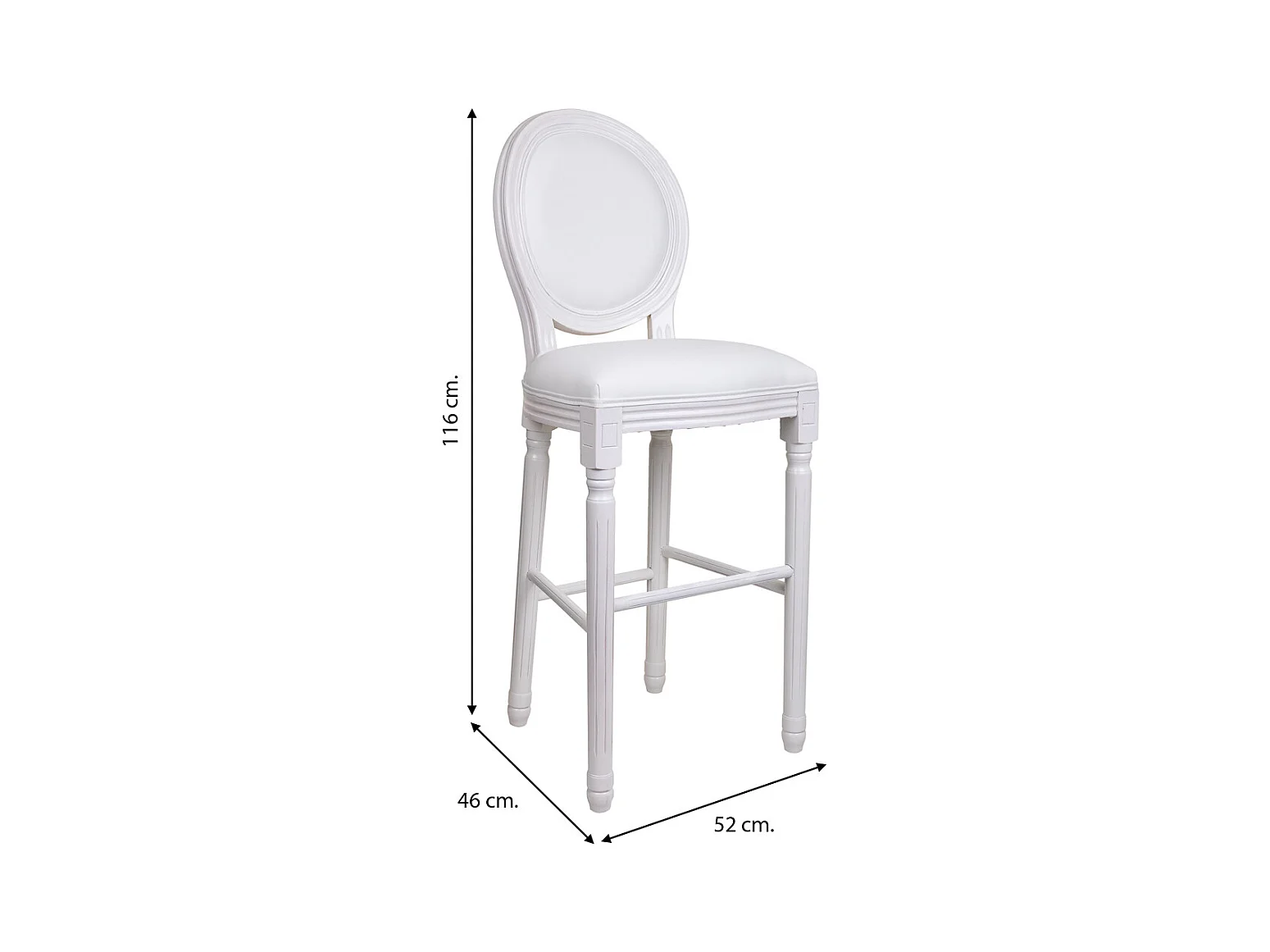 Banqueta de madeira branca 52x46x116
