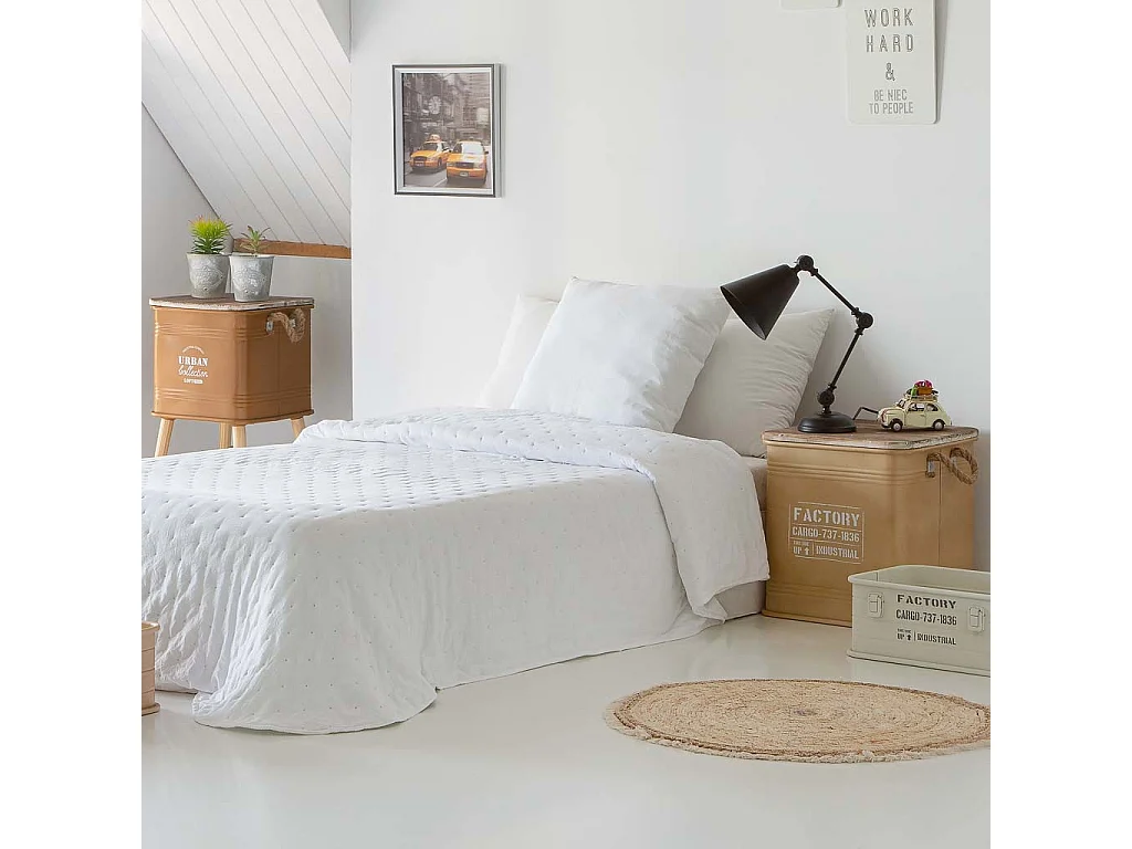 Conjunto de 2 tamboretes com arrumação PUEBLO Veludo Branco 40/33 cm 40/33 cm 44/36 cm