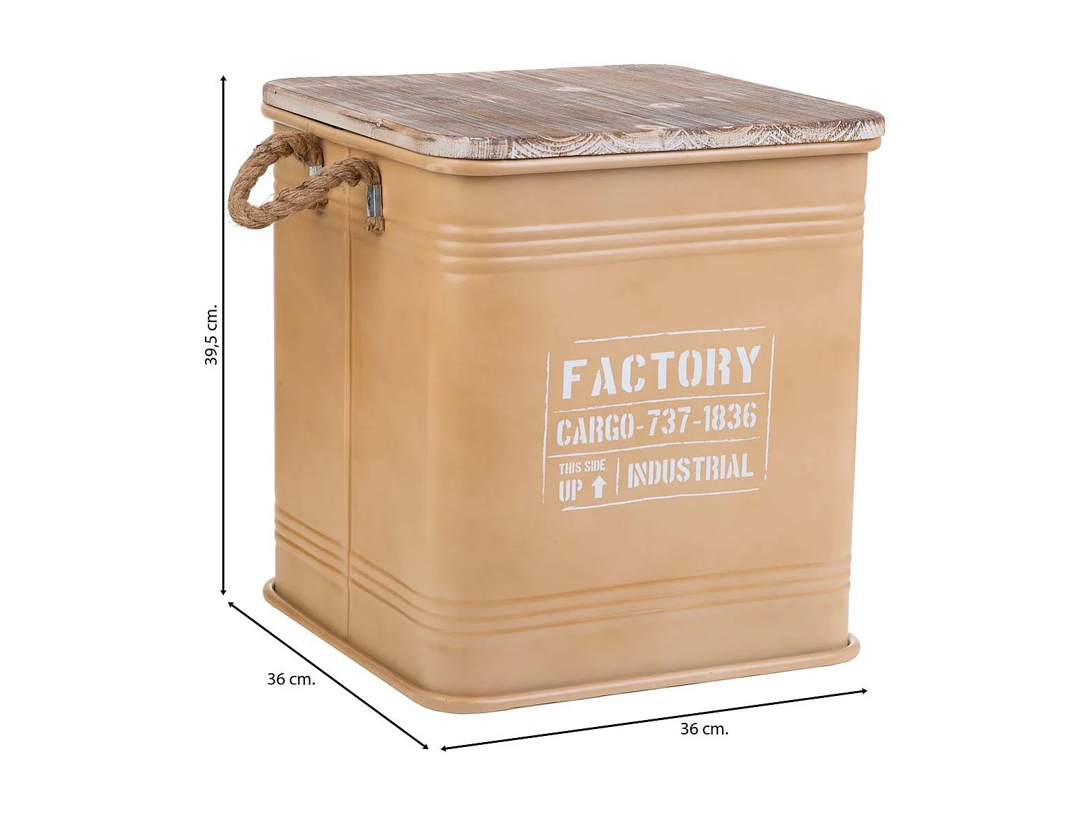 Banquinho de metal impresso marrom 36x36x39,5h cm
