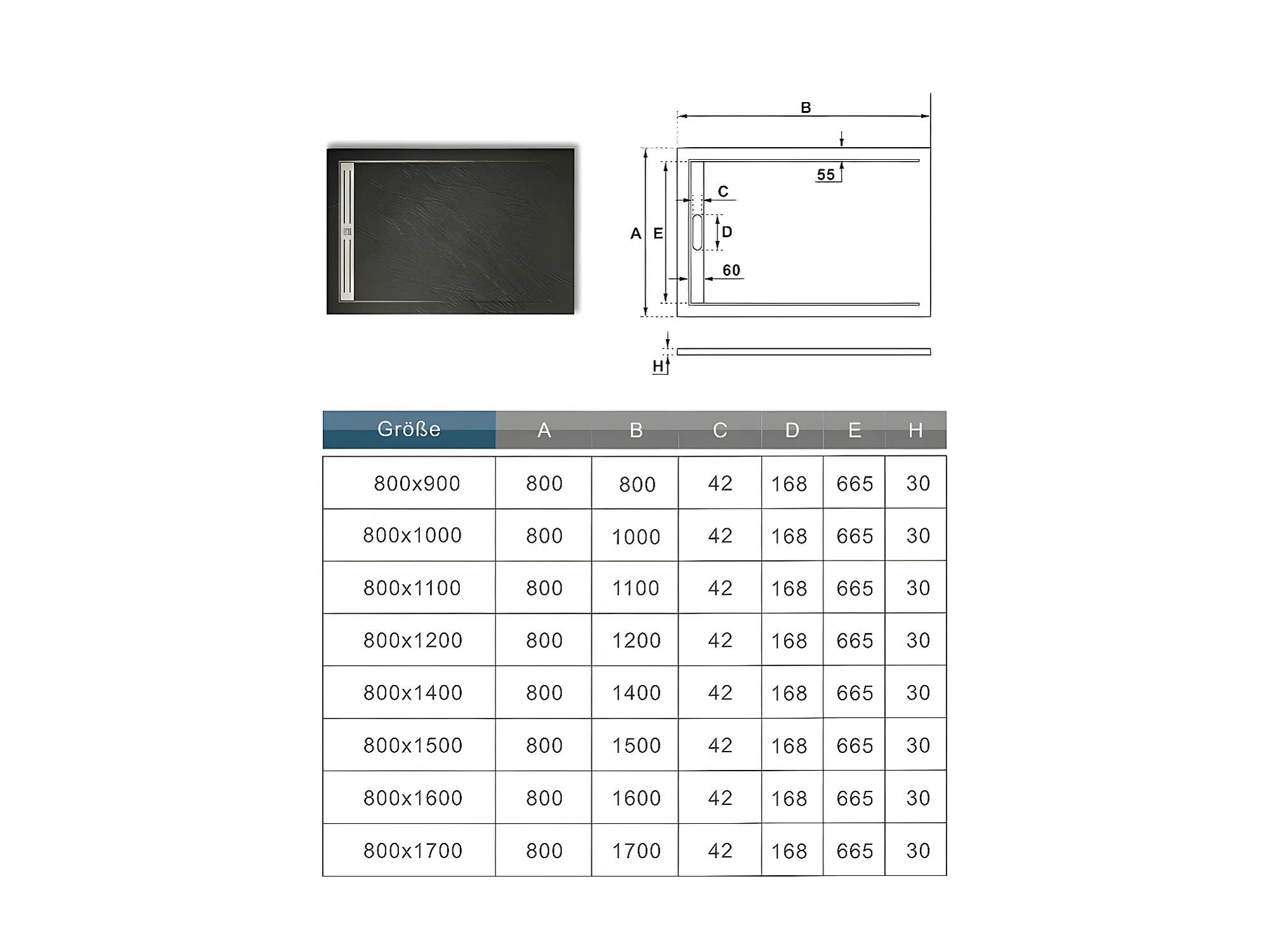 Base de duche Retangular 80x140x3cm extra plano RESIN SLATE GEL COAT Preto,Válvula incluída,Antiderrapante-AICA