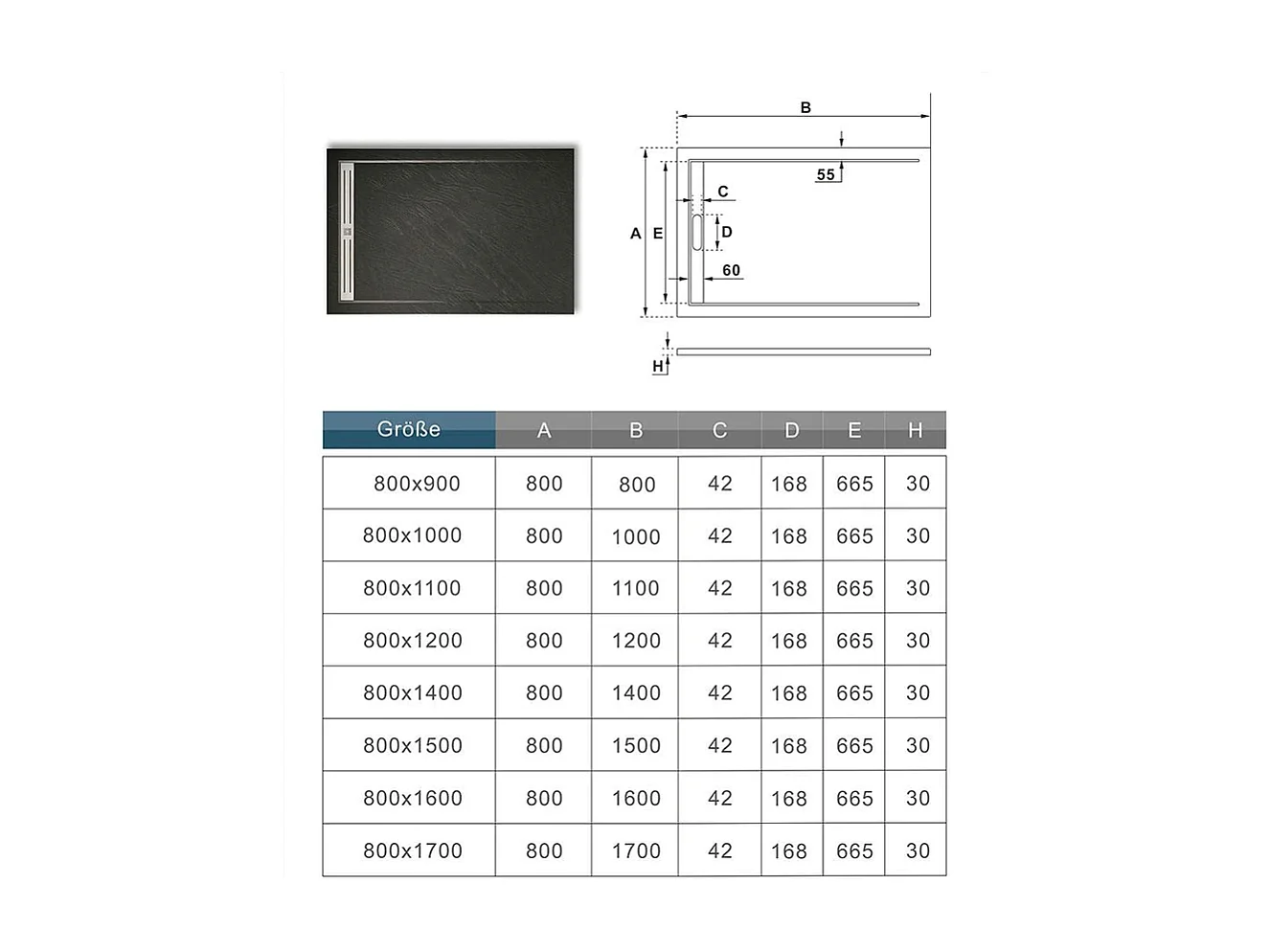 Base de duche Retangular 90x120x3cm extra plano RESIN SLATE GEL COAT Preto,Válvula incluída,Antiderrapante-AICA