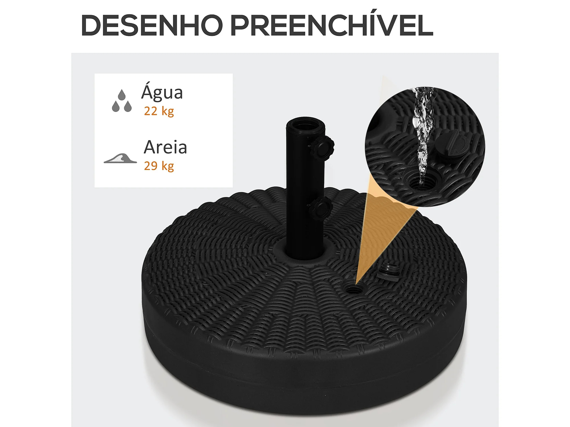 Base Recarregável para Chapéu de Sol com Água ou Areia - Suporte Estável e Elegante