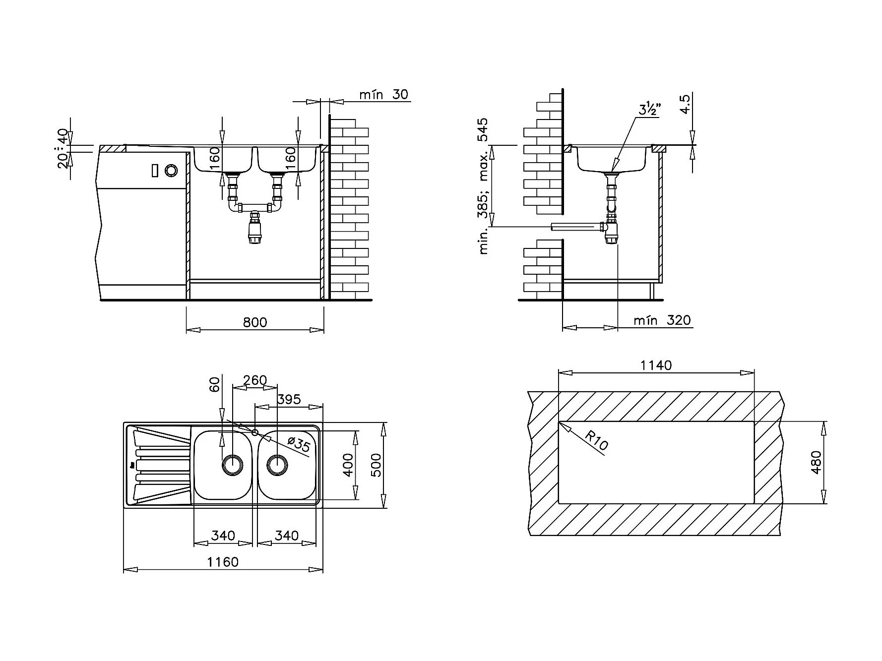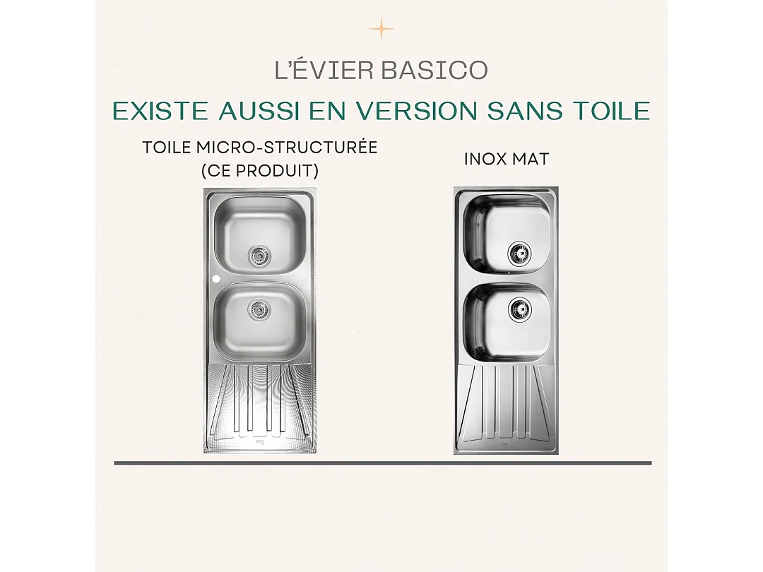 Basico pia com 2 cubas e 1 escorredor em aço inoxidável com tela microestruturada Teka