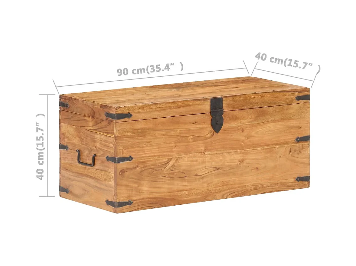 Baú de arrumação 90x40x40 cm Madeira maciça de acácia