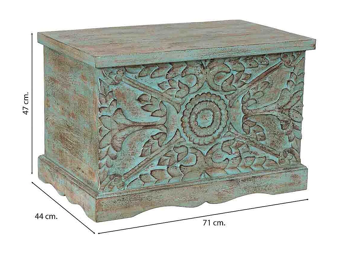 Baú de madeira azul, 71x44x47h cm