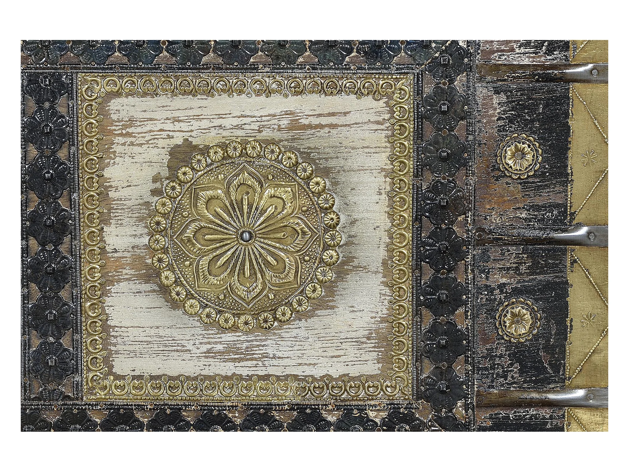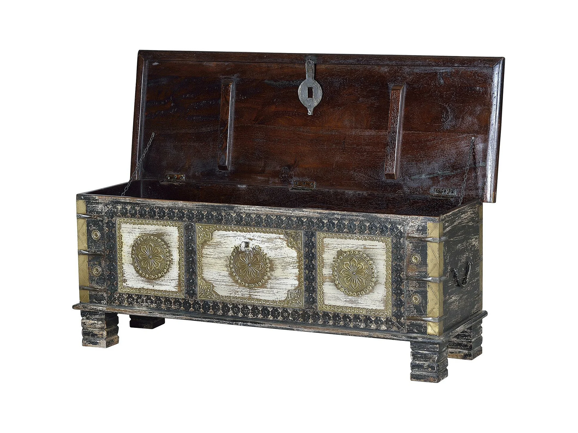 Baú em madeira de mangueira e detalhes em bronze Multicolor.Giner y Colomer.45x40x116