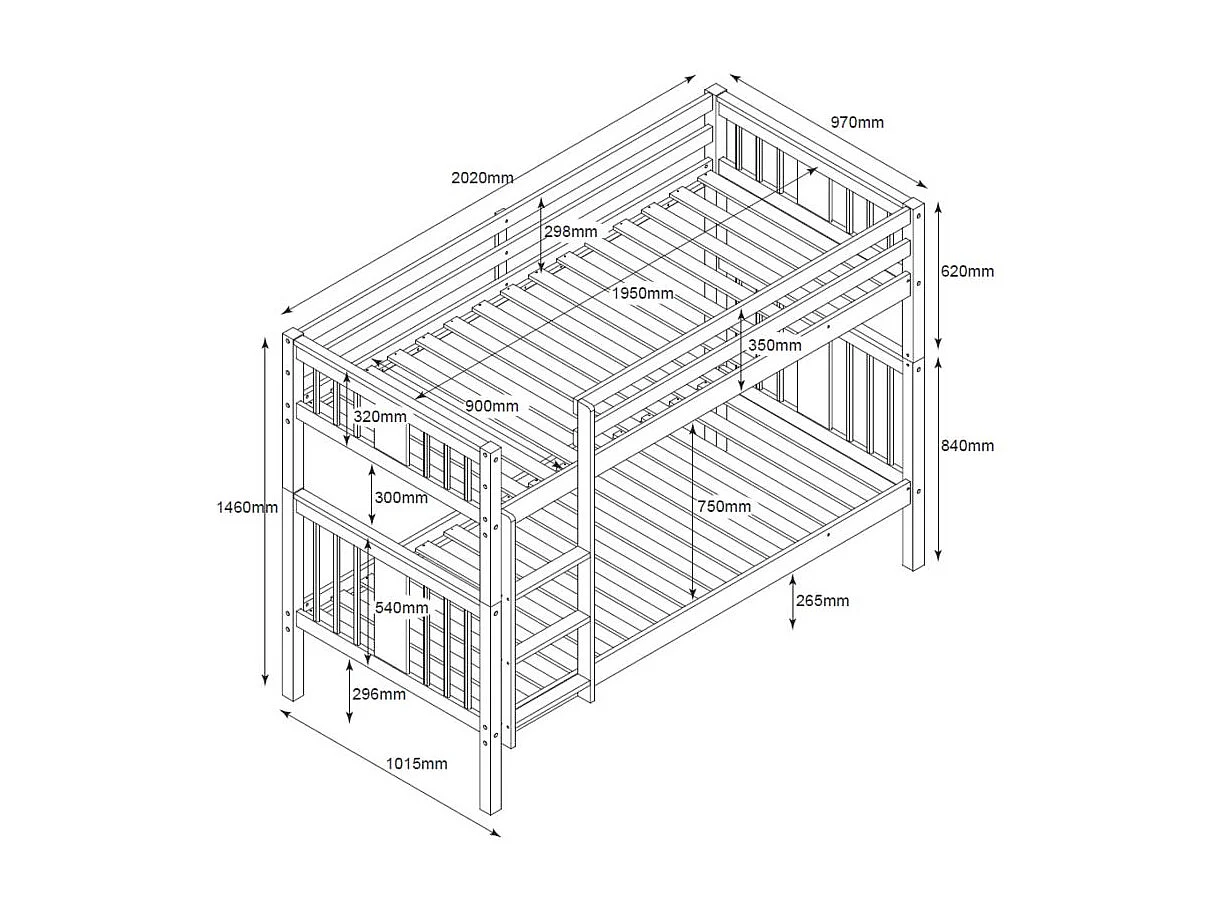 Beliche + cama extraível elevável em madeira branca 90x190cm