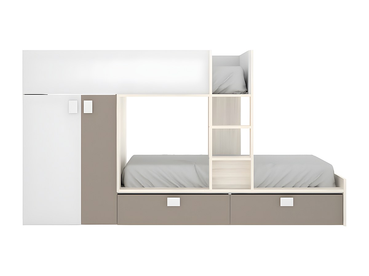 Beliche com armário integrado de 2 x 90 x 190 cm cor branco, carvalho e taupe - JUANITO