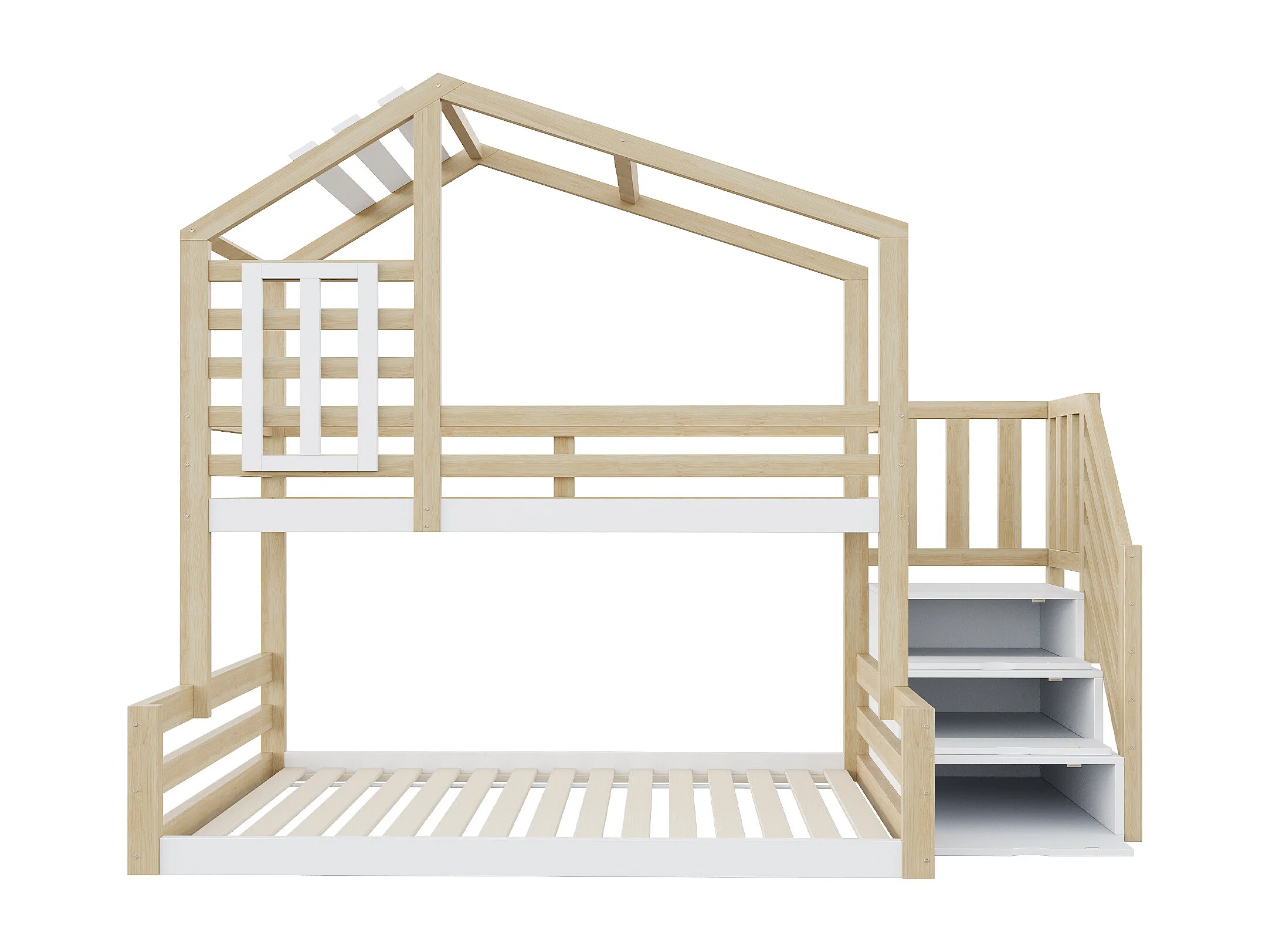 Beliche de 90 x 200 cm e 140 x 200 cm - Cama tipo cabine com arrumação - Cores naturais claras e branco