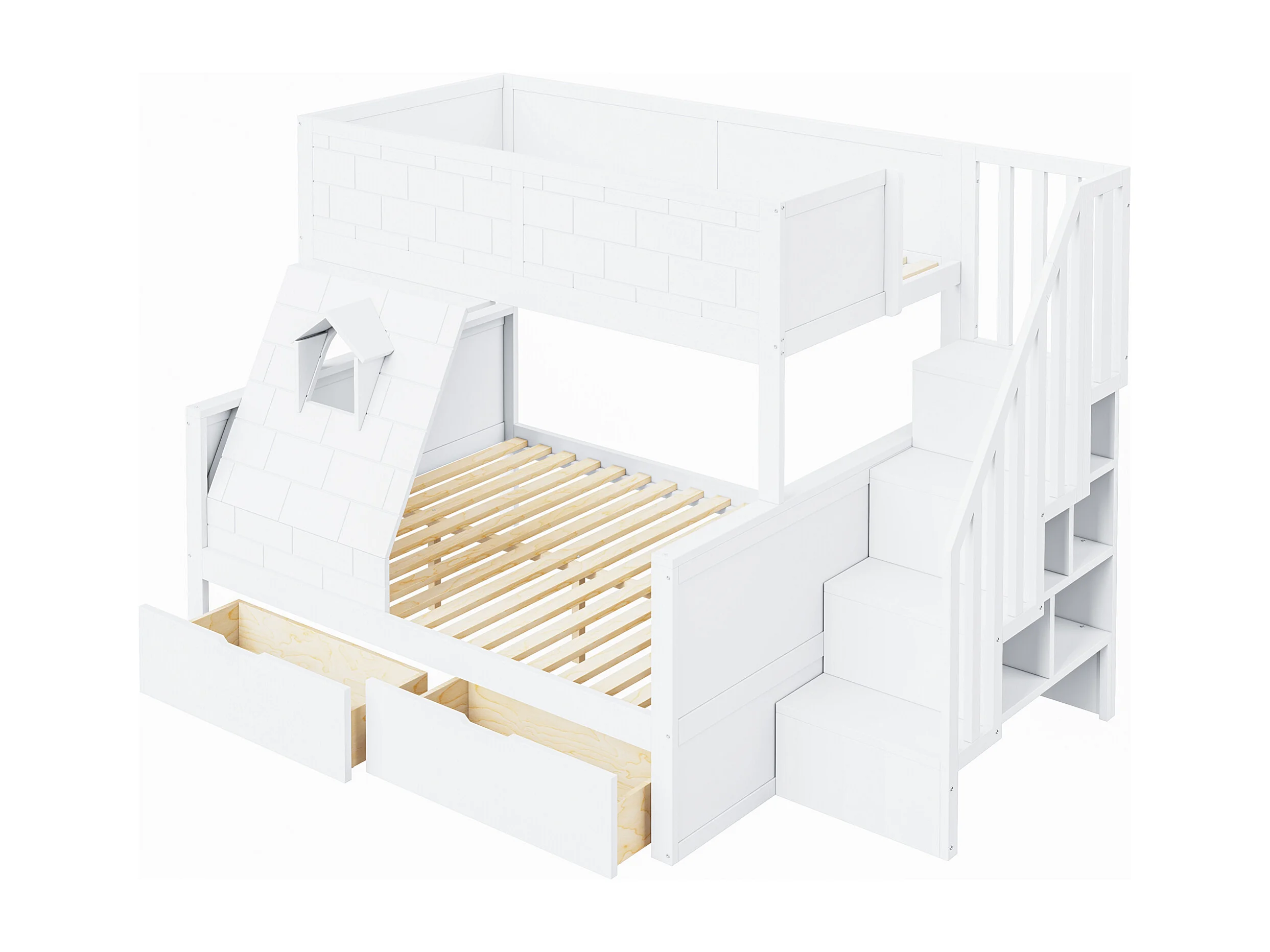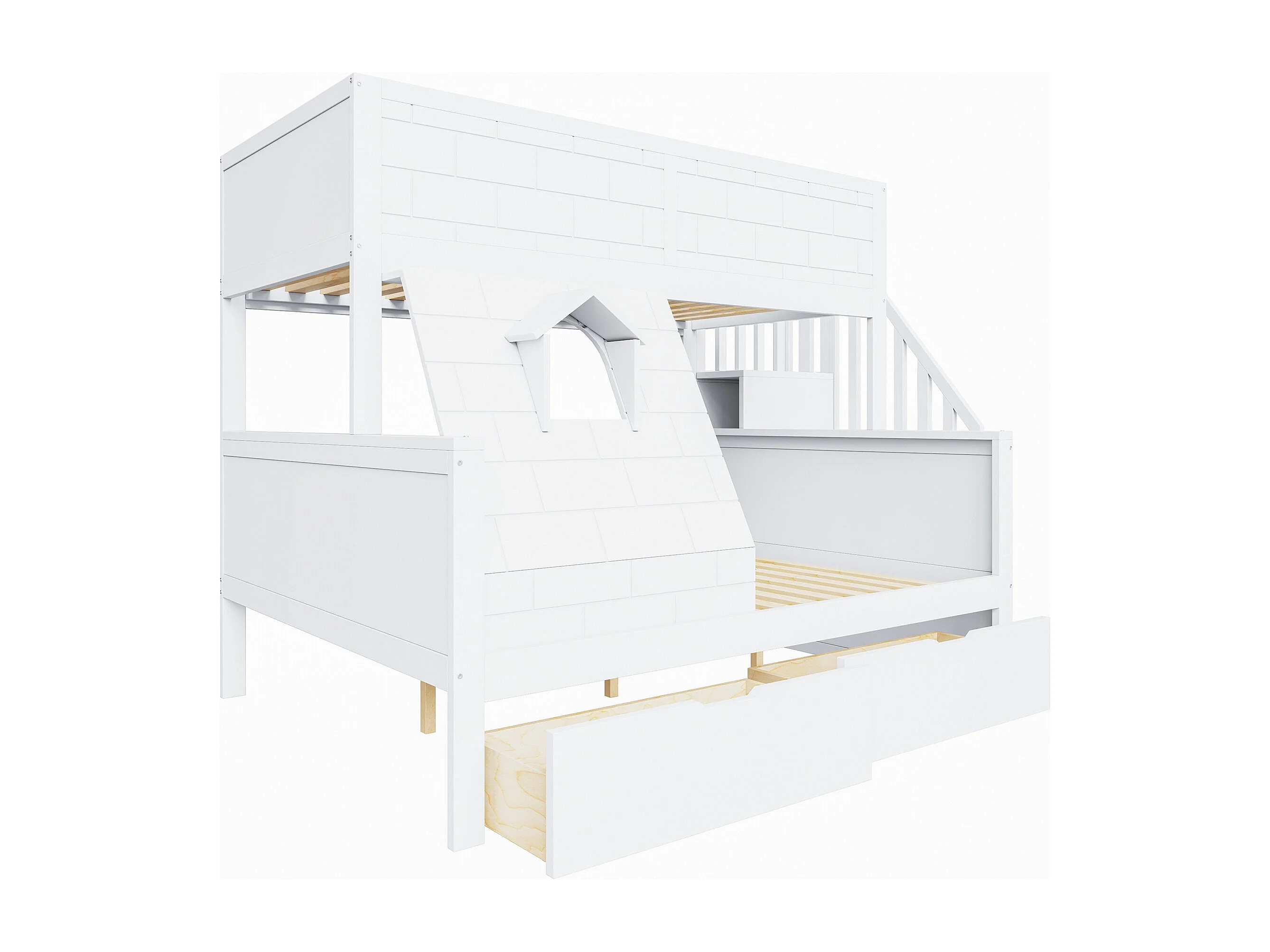 Beliche de 90 x 200 cm e 140 x 200 cm com 2 gavetas - Madeira de pinho e MDF branco