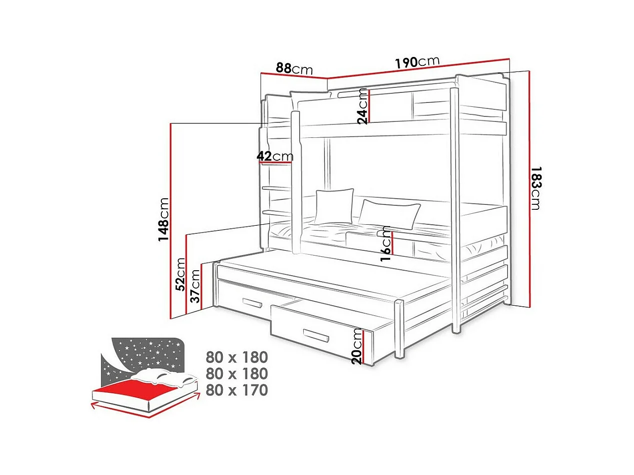 Beliche Henderson 113, Beliche com cama extra, Cinzento, Madeira