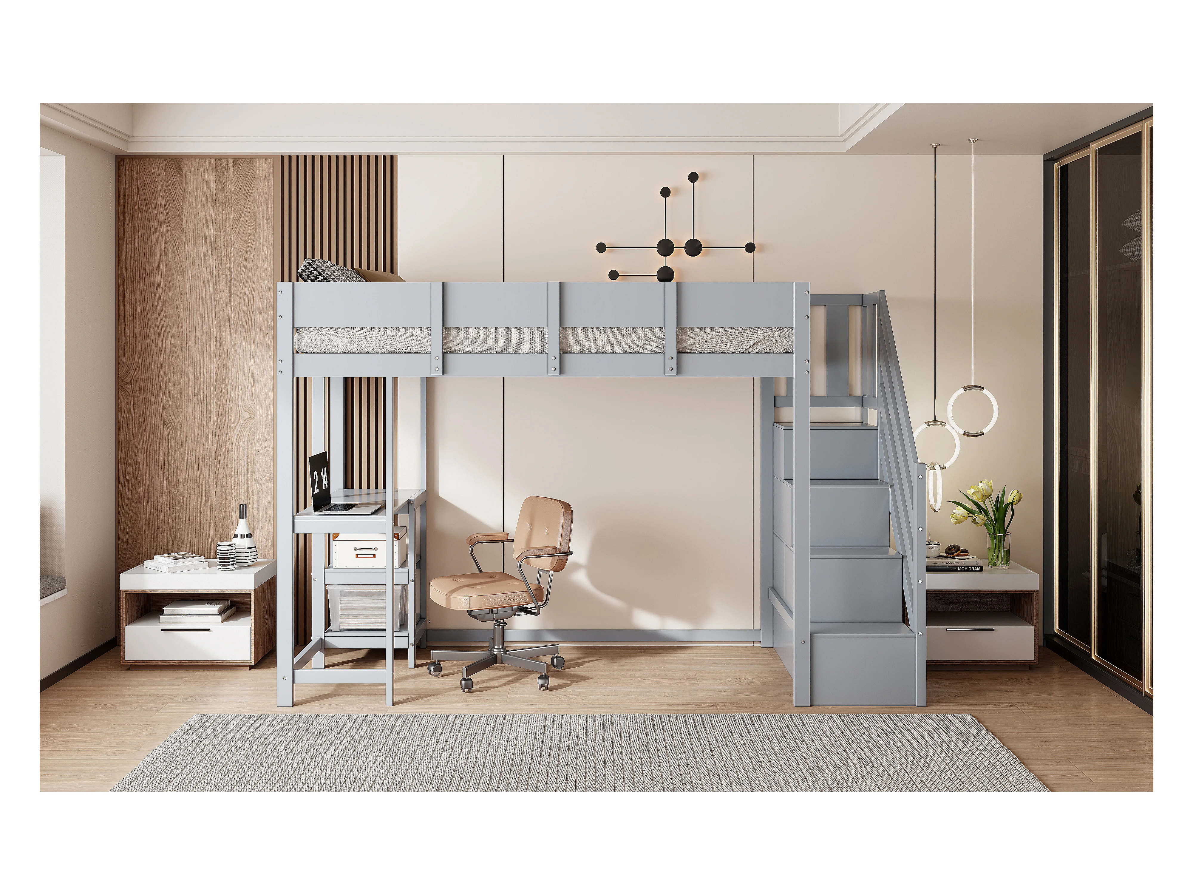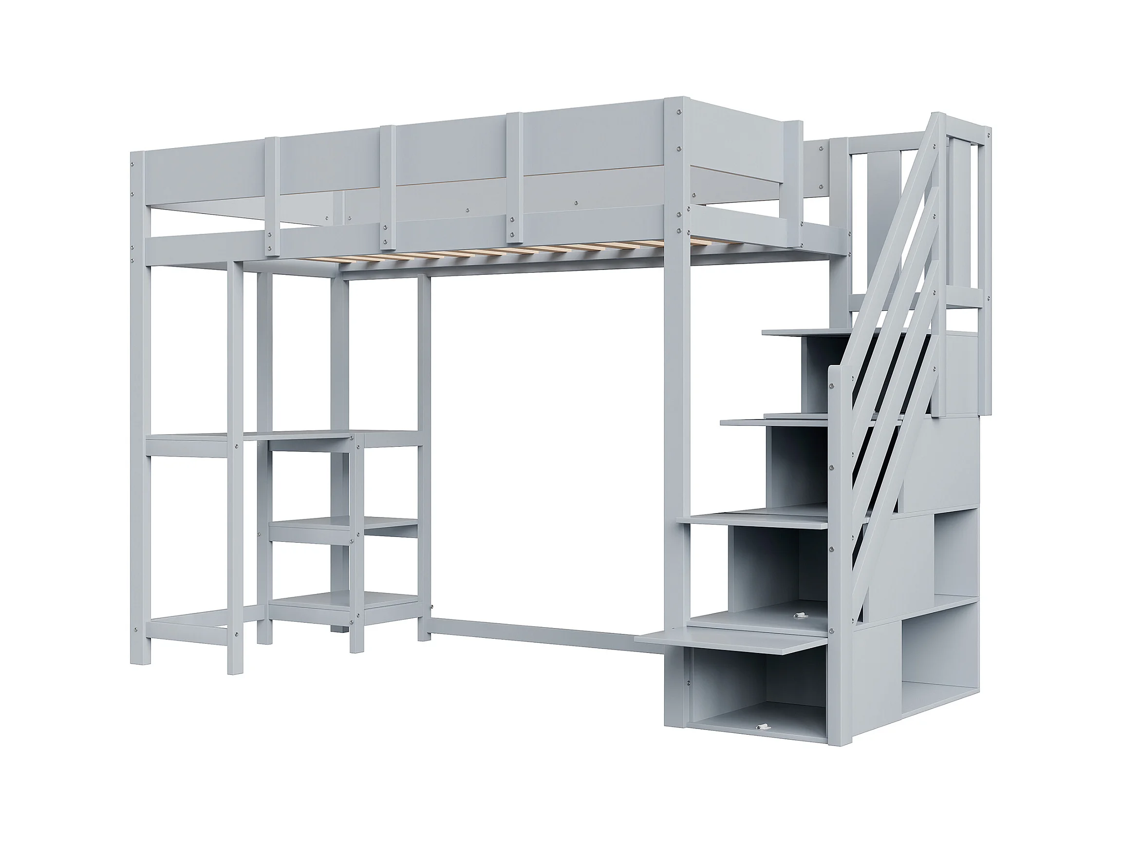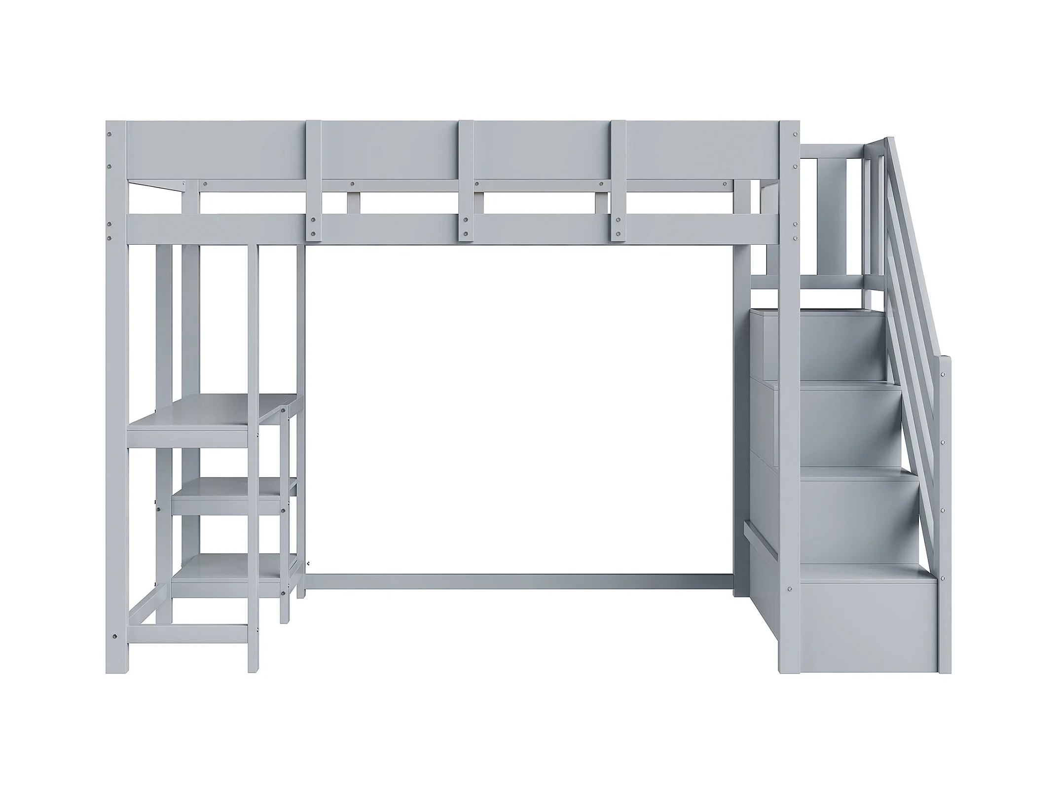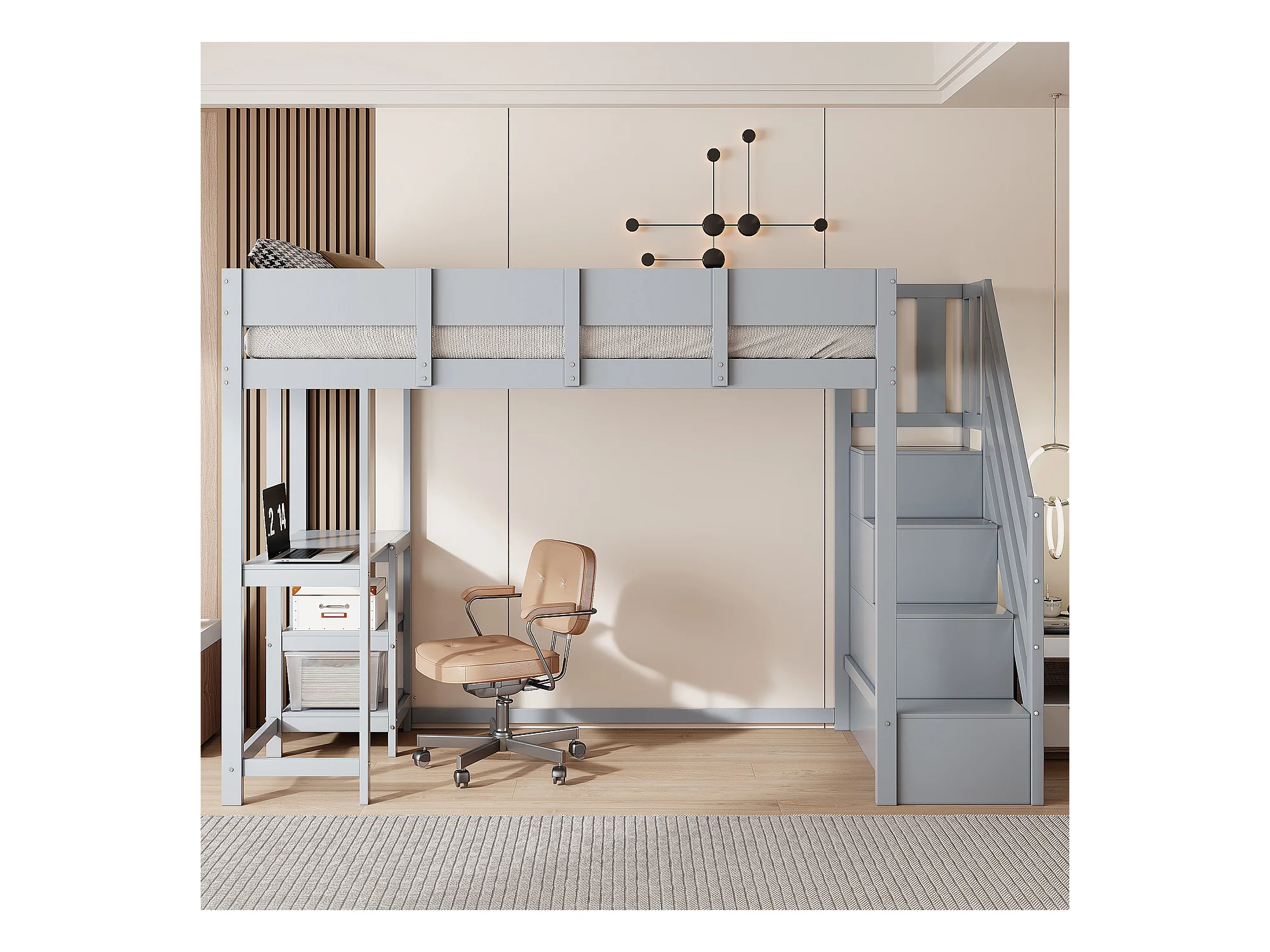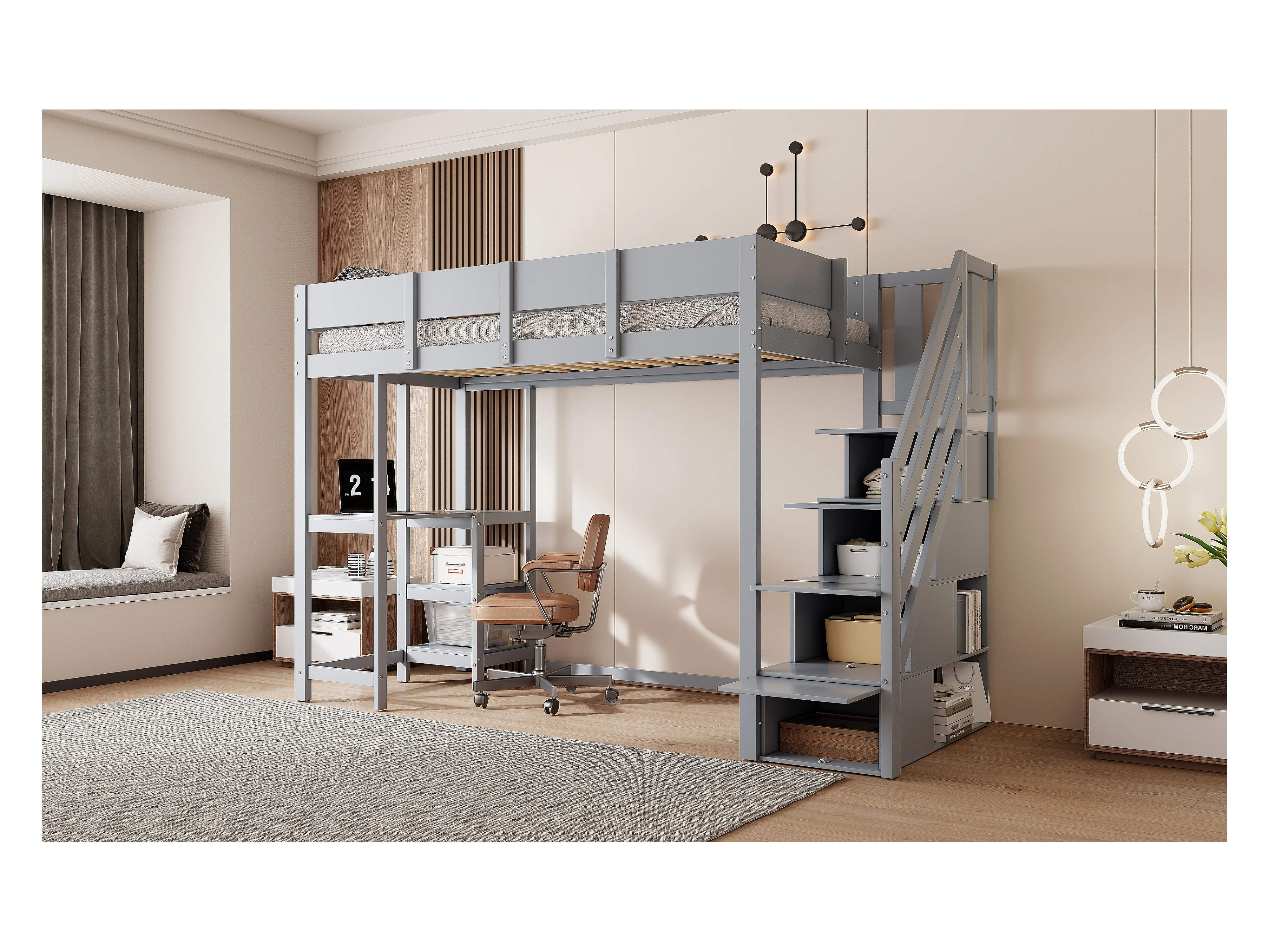 Beliche multifuncional com espaço de arrumação, cama alta com prateleira