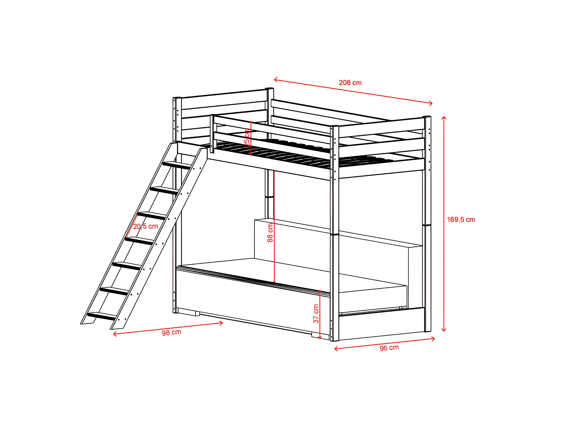 Beliche-sofá madeira branco 170x208x96/140cm