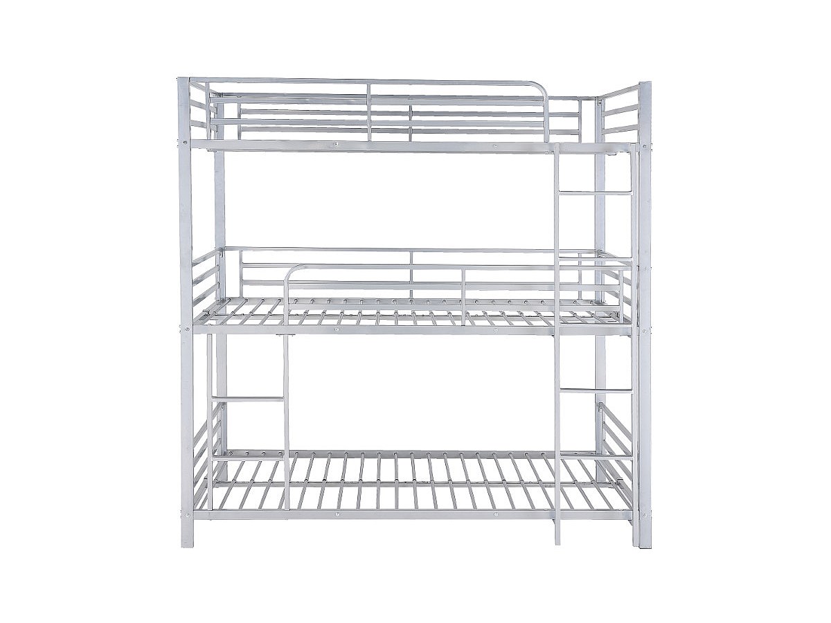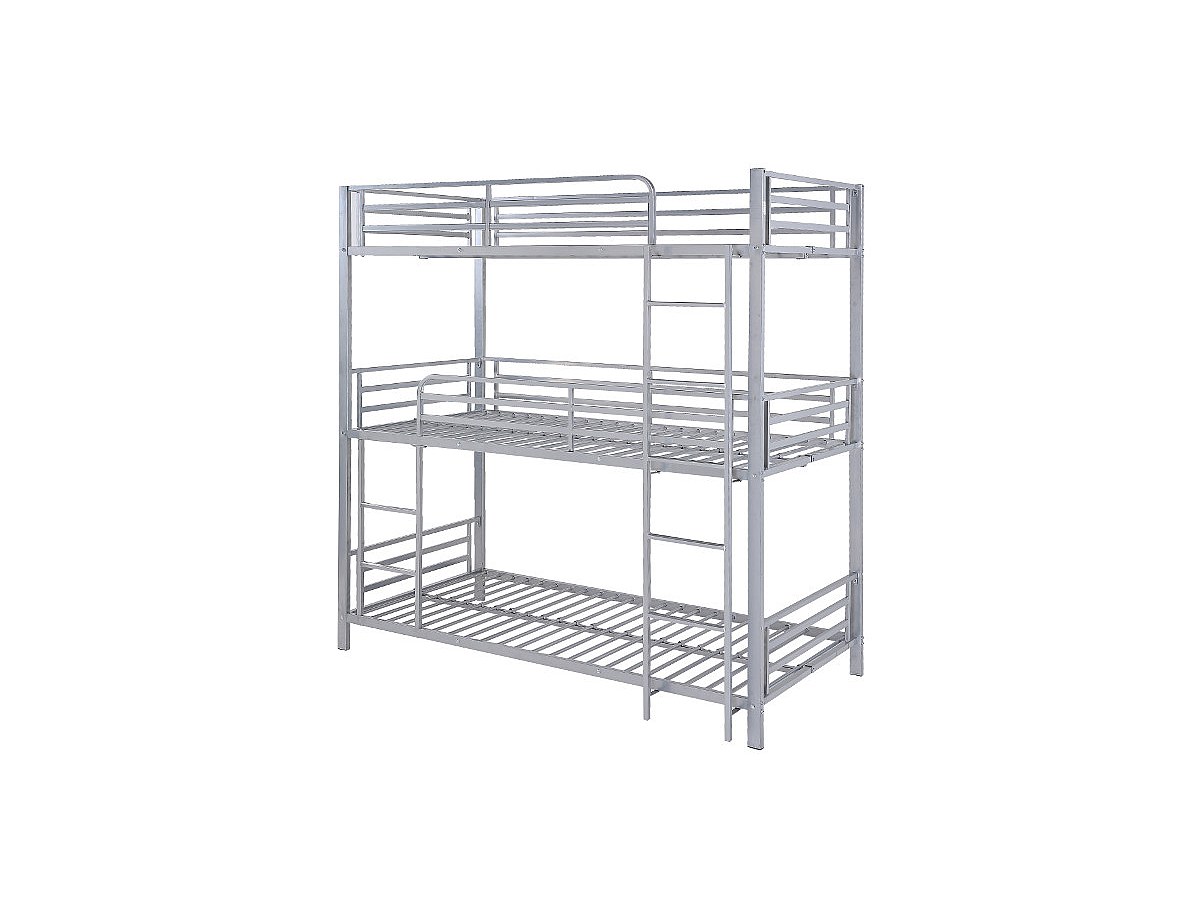 Renda-se a este magnífico beliche triplo em metal. Sóbrio e prático, vai permitir-lhe poupar espaço e vai adequar-se na perfeição aos espaços pequenos!Características: