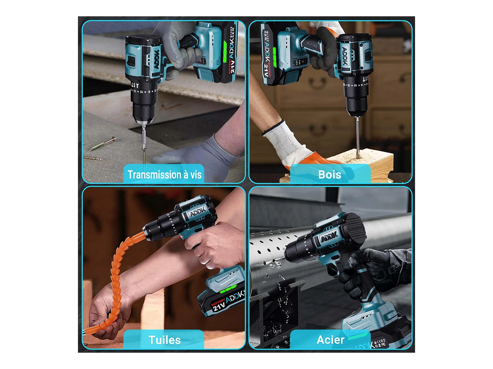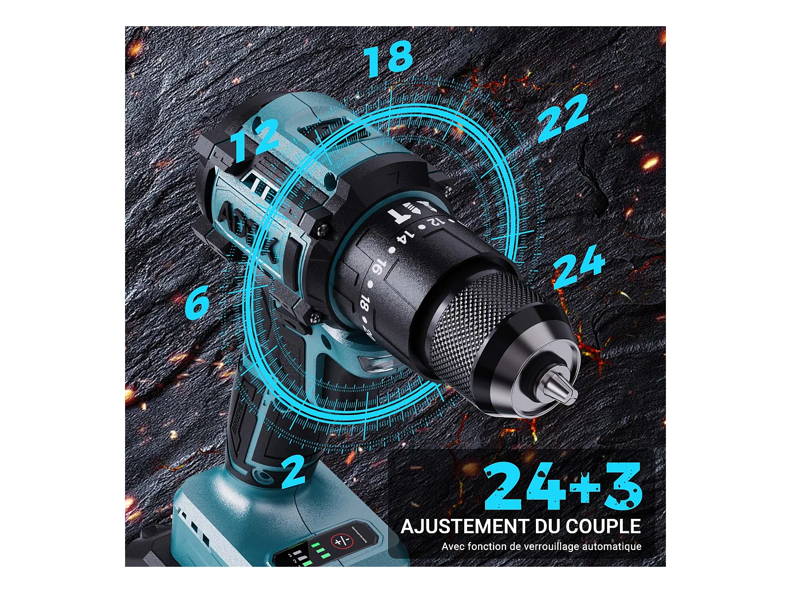 Furadeira com bateria de lítio de 21 V, 24 + 3 funções de percussão, 3 configurações de velocidade, conjunto de 22 peças, azul