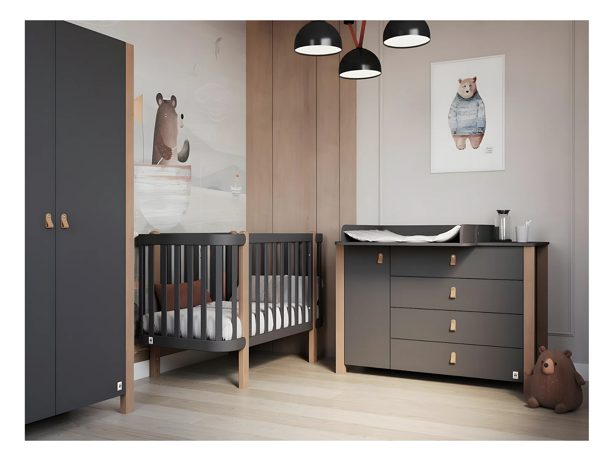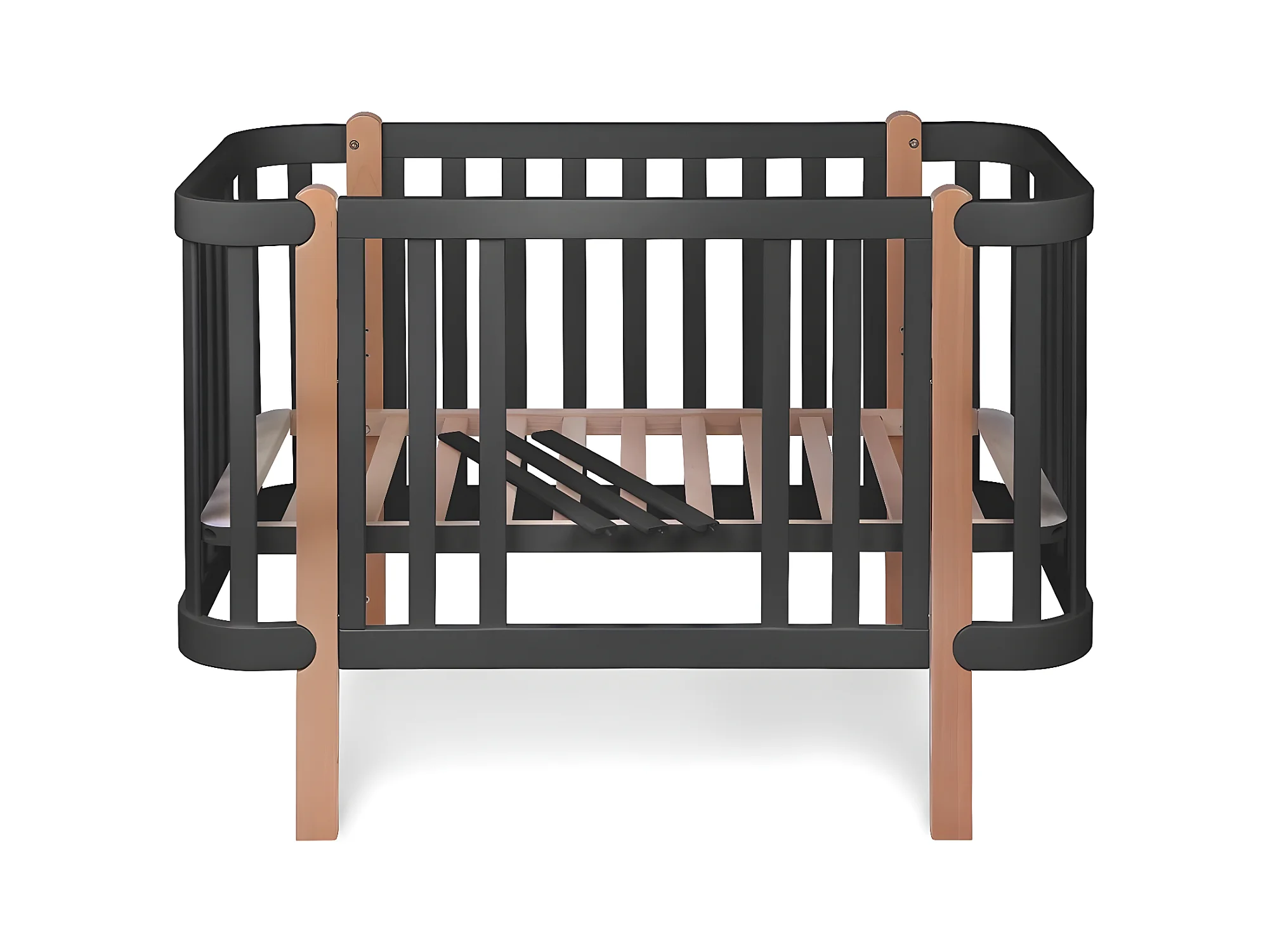Berço 90x200 cm - com arrumação - com porta - com ripas - cinza (colchão não incluído)