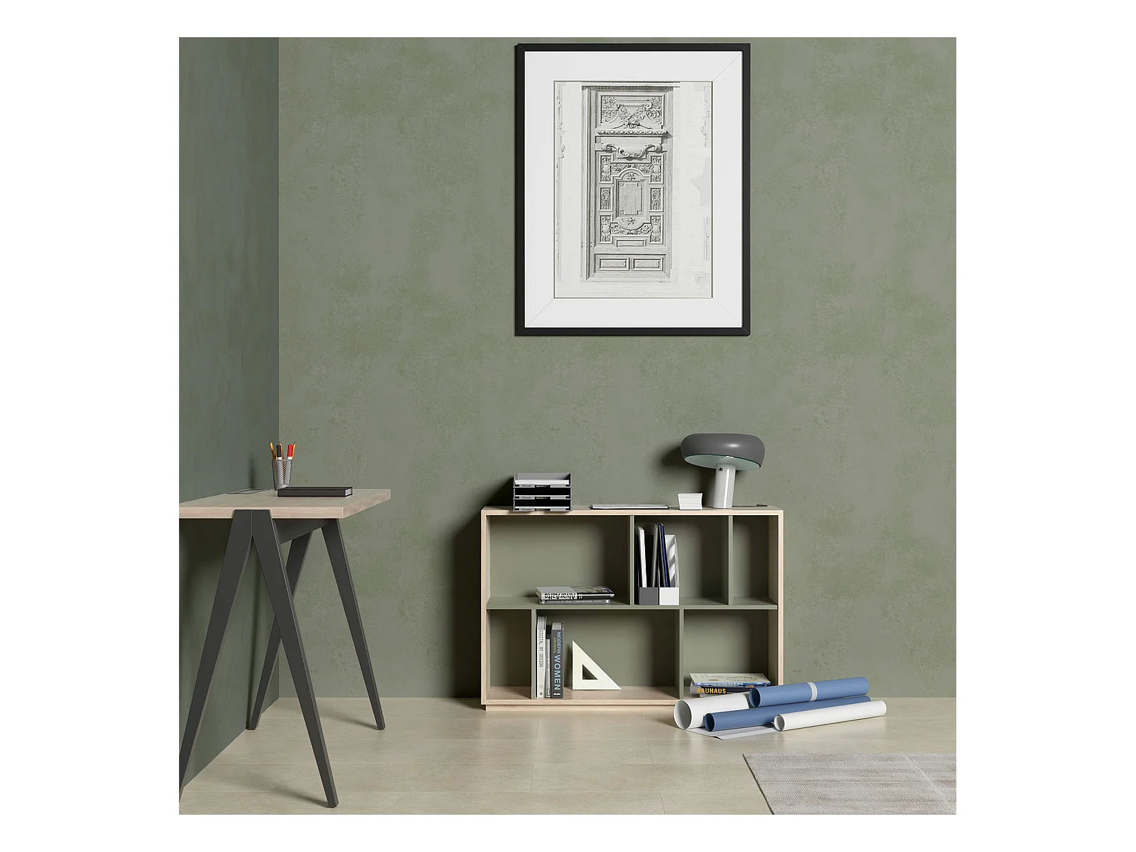 Biblioteca 3 prateleiras - A117cm x C119cm x P32cm carvalho e verde - Nack