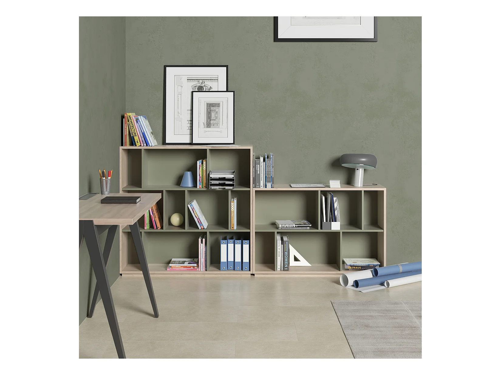 Biblioteca 2 prateleiras - A80cm x C119cm x P32cm carvalho e verde - Nack