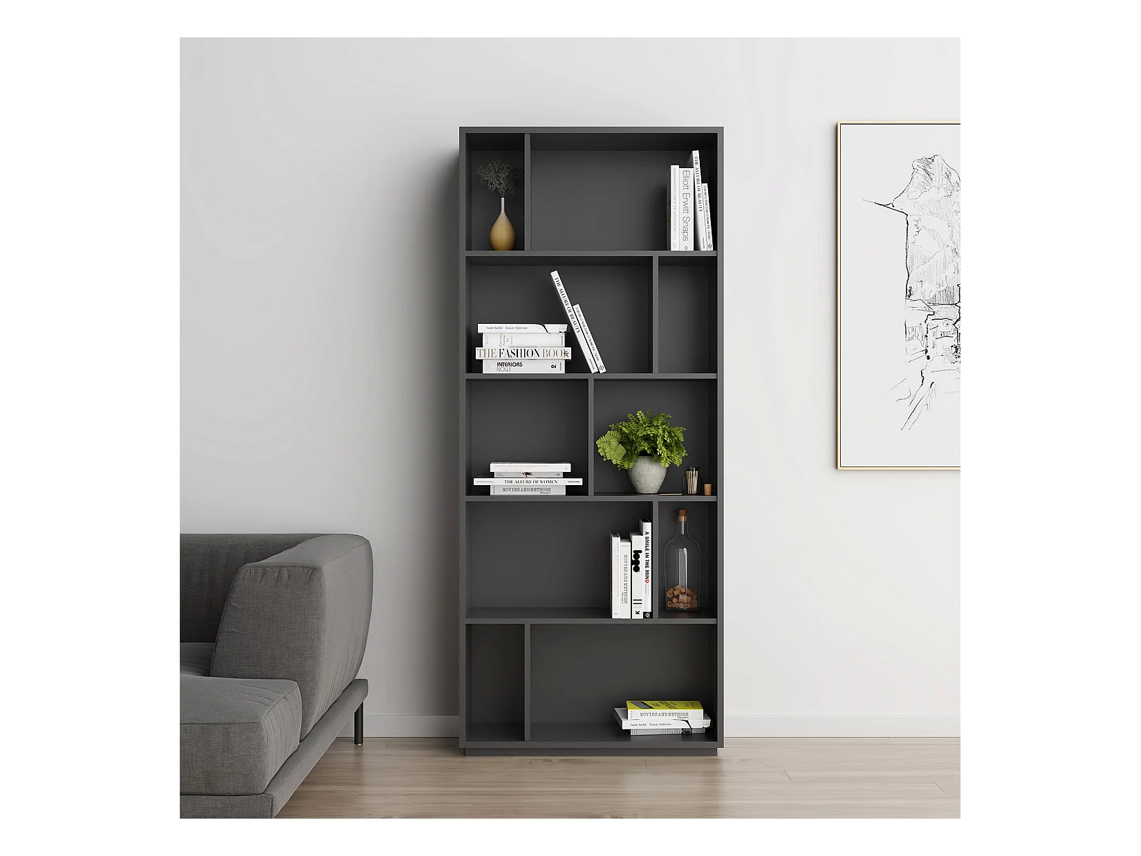 Biblioteca 5 prateleiras - A191cm x C80cm x P32cm antracite - Nack