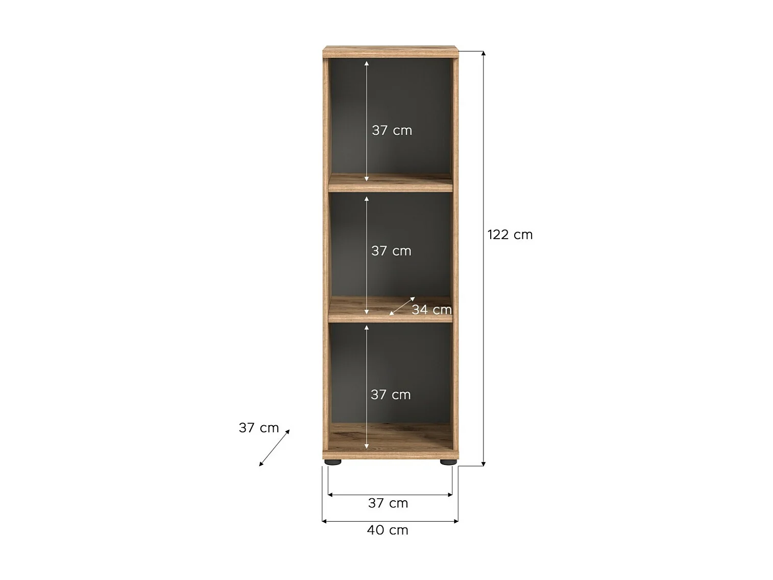 Biblioteca de armazenamento 3 níveis – Carvalho claro e cinza escuro – SELMA