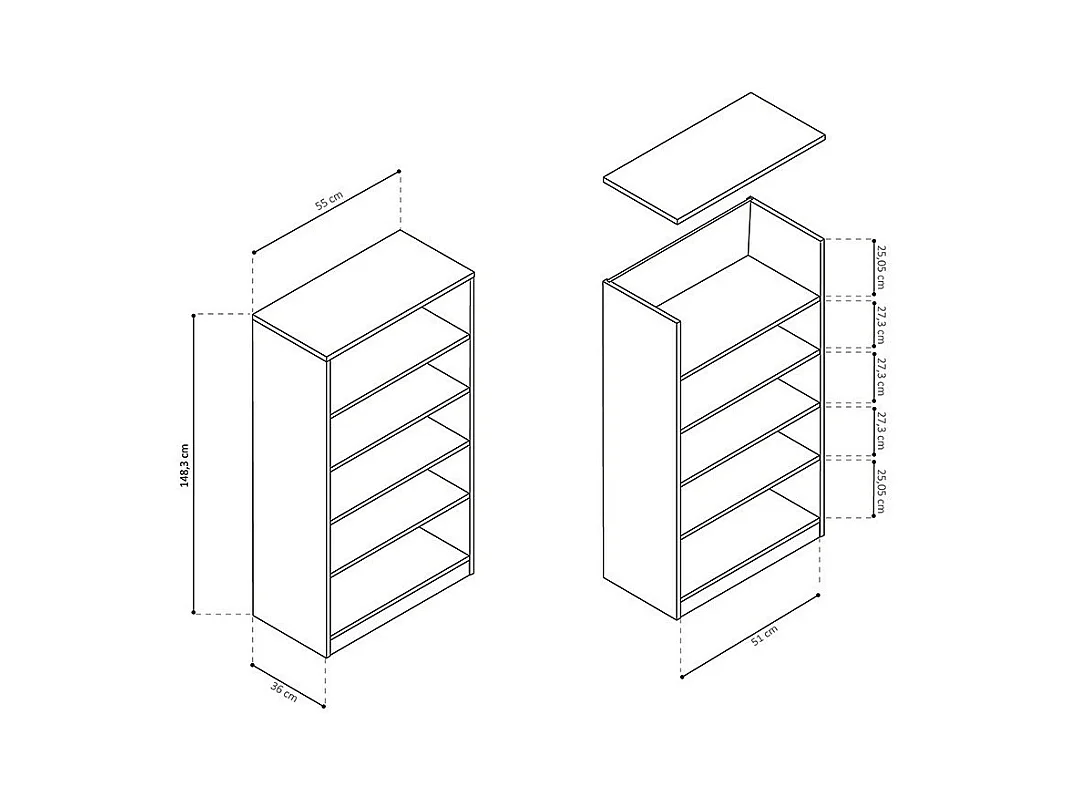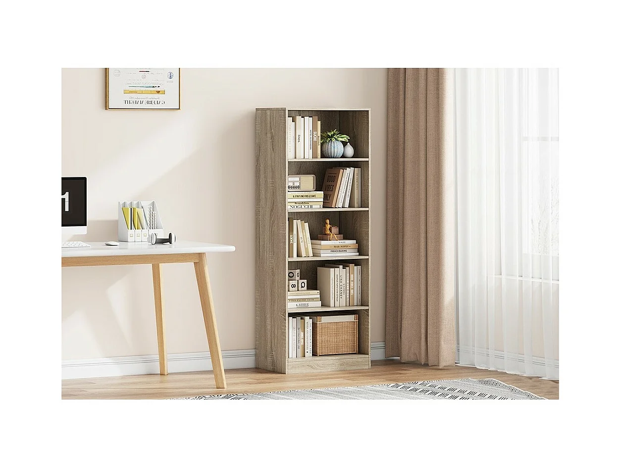 Biblioteca design com 5 prateleiras, cor carvalho claro, coleção TOLLY