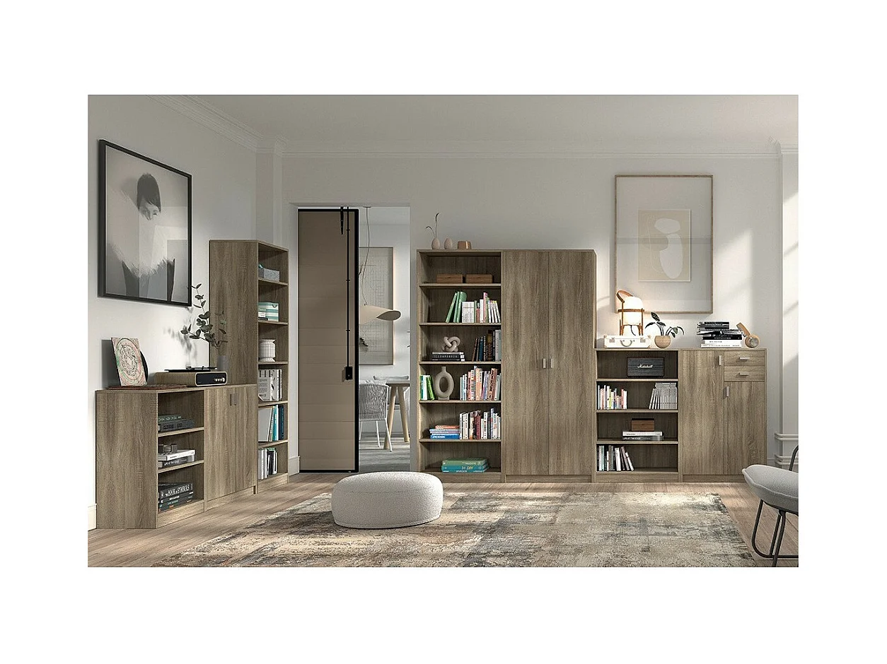 Biblioteca design com 4 prateleiras, cor de carvalho claro, coleção TOLLY
