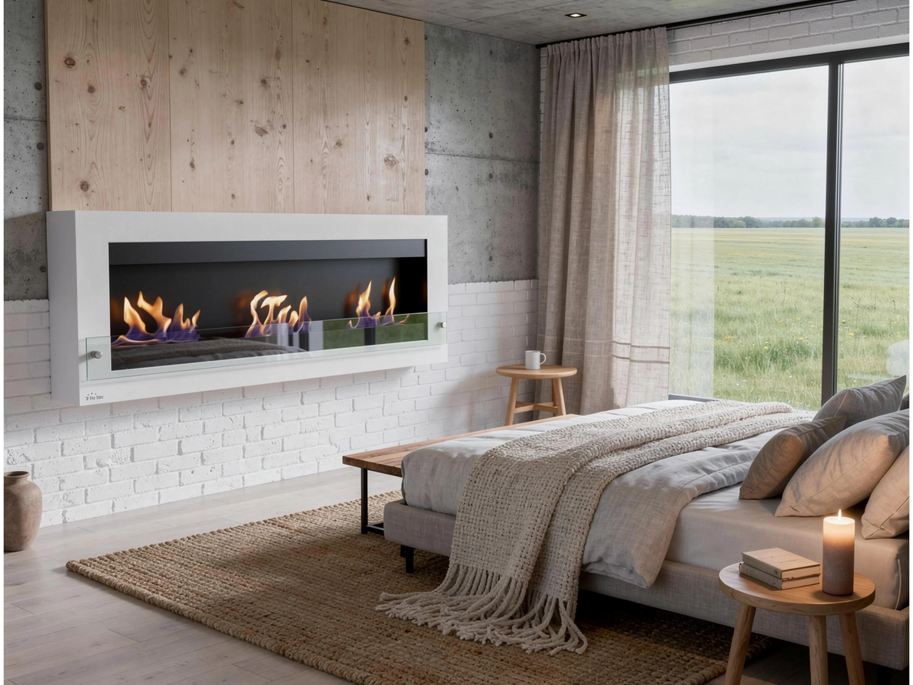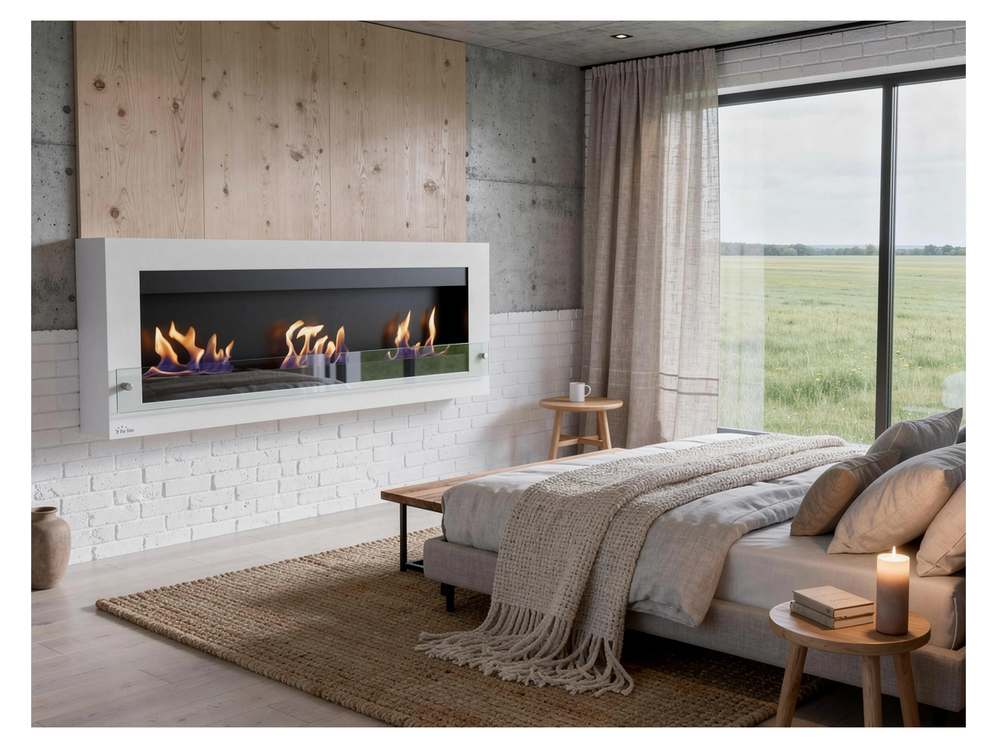 Lareira a etanol extra-grande montada na parede em aço e vidro temperado