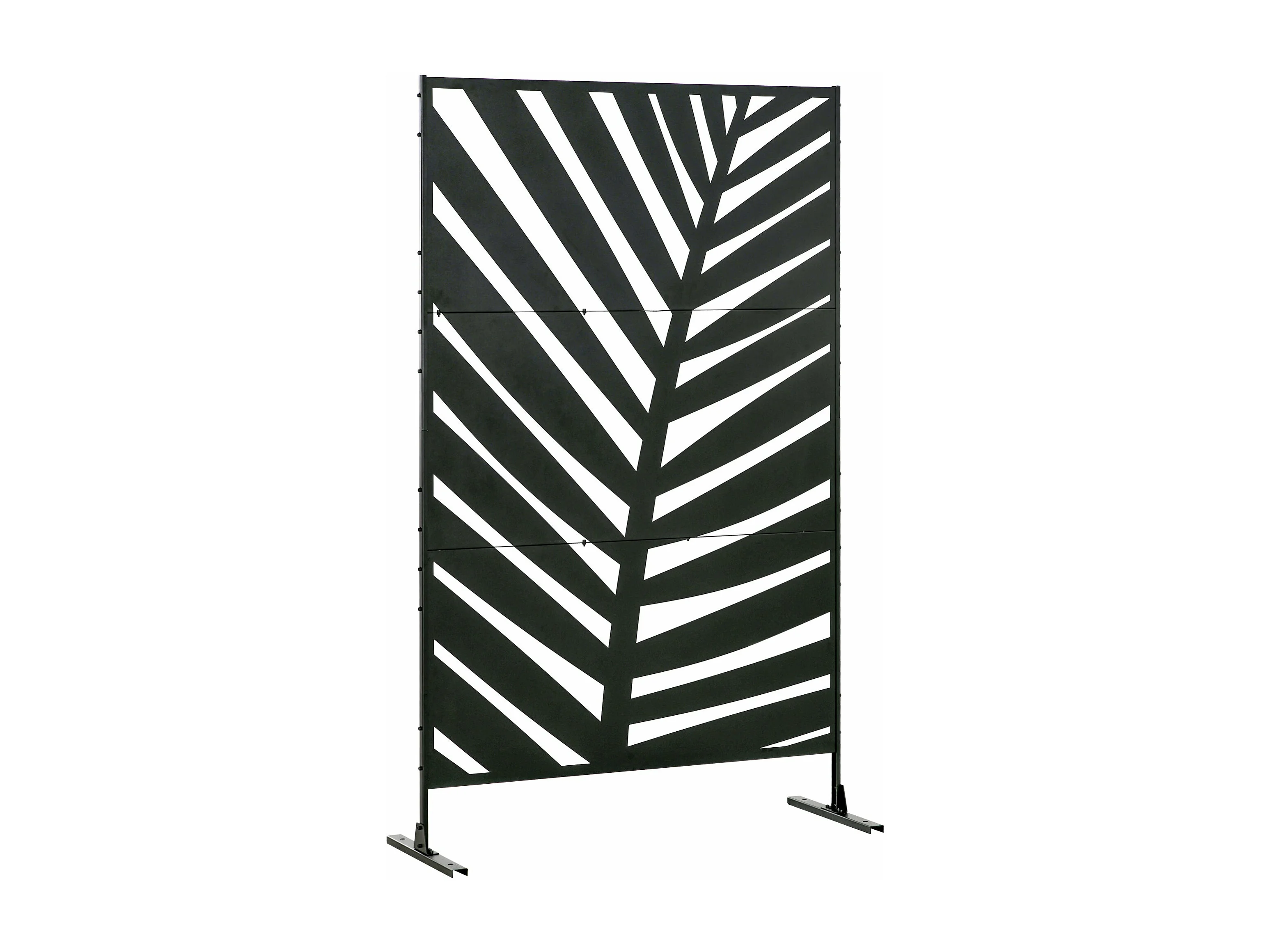 Biombo Decorativo de 3 Peças em Aço com Padrão de Folha de Bananeira para Jardim e Varanda 122x45x198 cm Preto