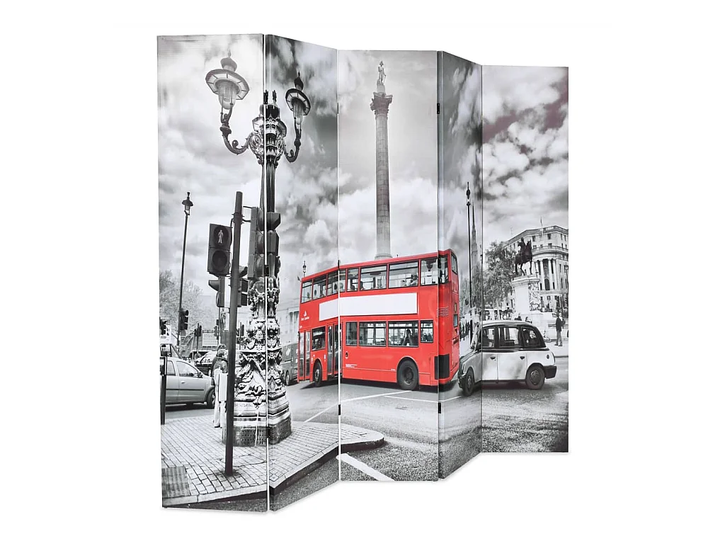 Biombo dobrável autocarro londrino 228x170 cm preto e branco PT319605