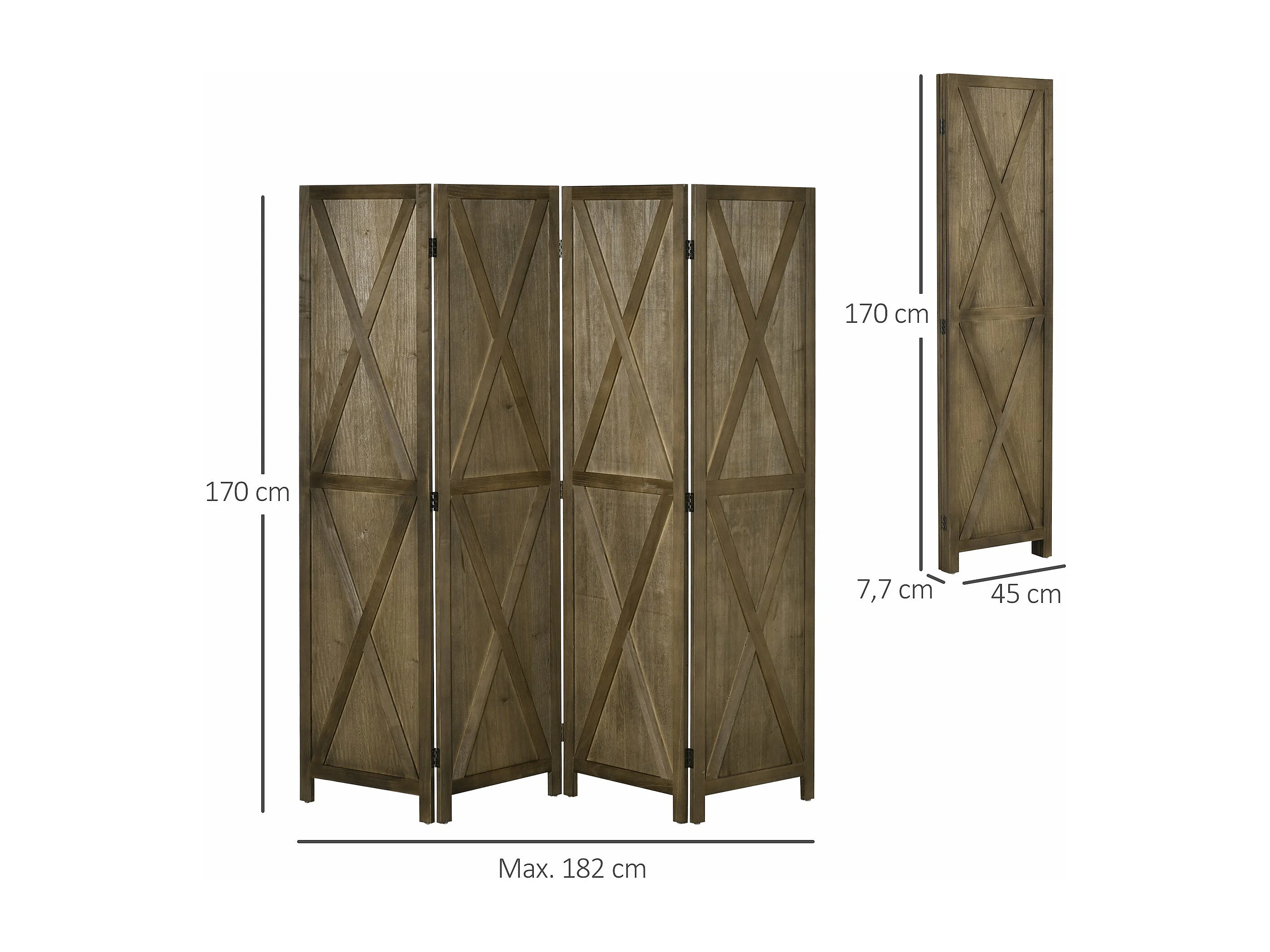 Parede divisória 4 painéis marrons madeira maciça paulownia