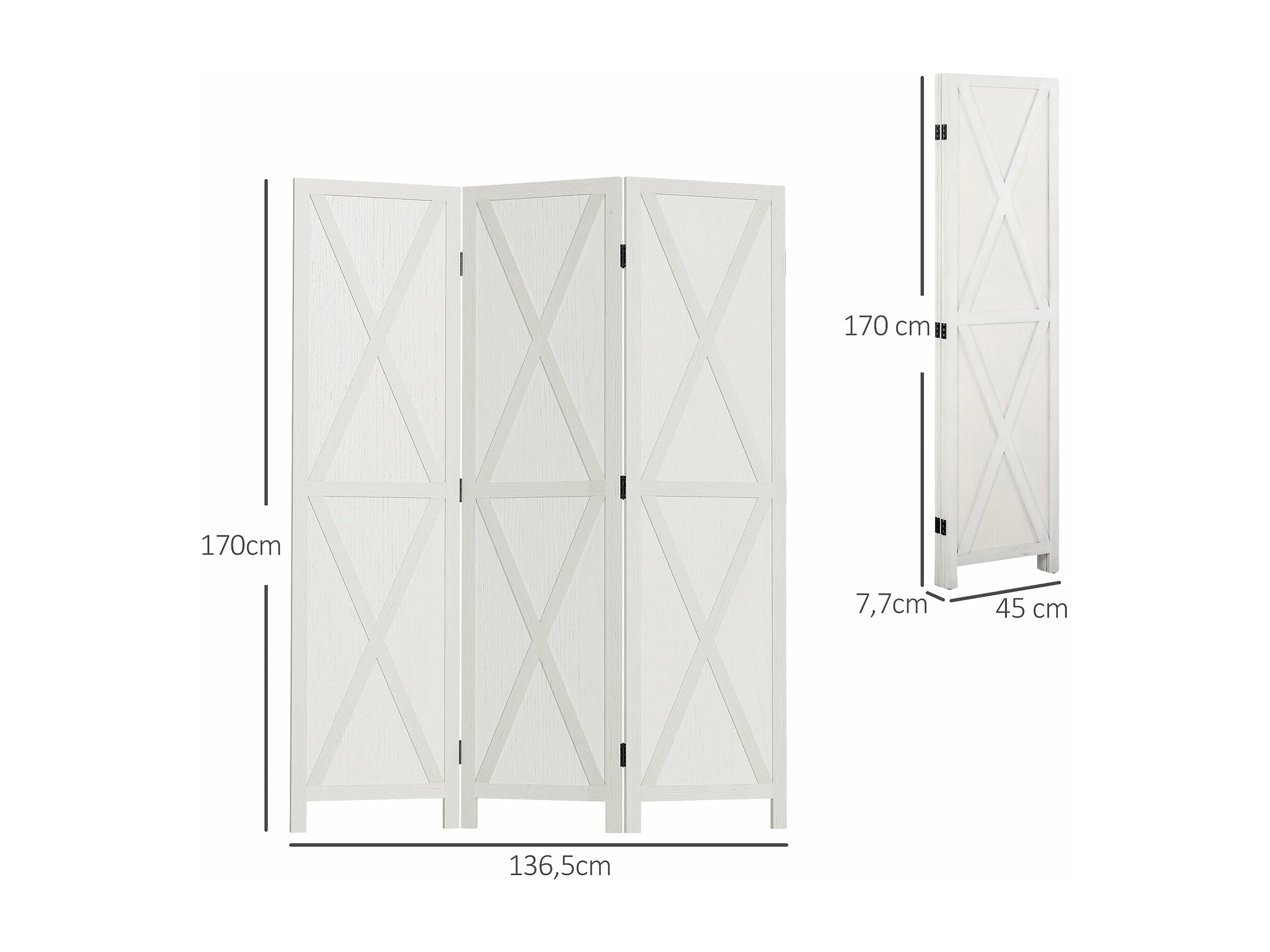 Parede divisória 3 painéis Branco 150x180 cm Tecido