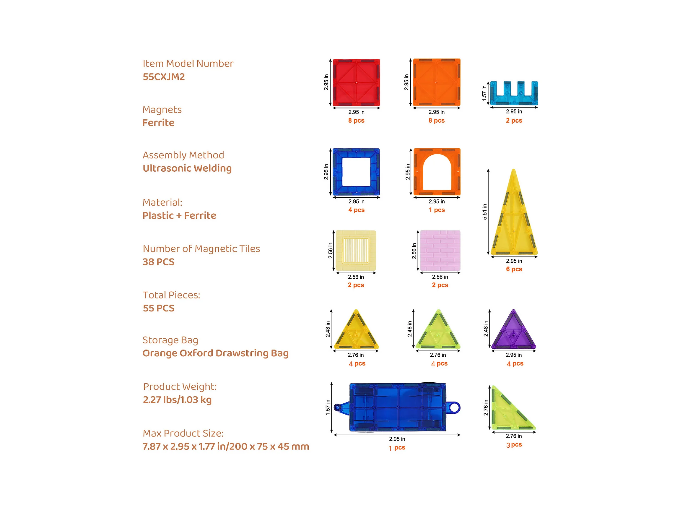 Bloco de Construção Magnético, SucceBuy Conjunto de 55 Peças de Peças Magnéticas, Blocos de Construção Magnéticos para Crianças, Brinquedo 3D