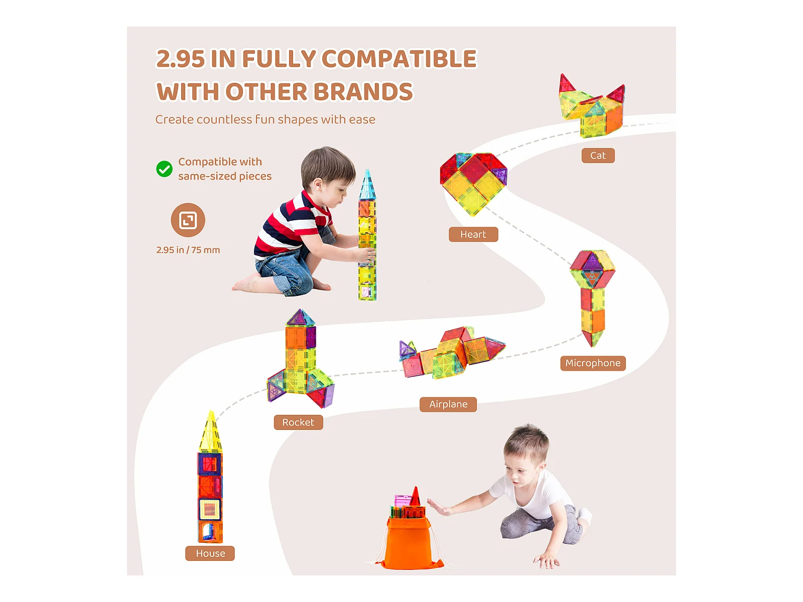 Construção Magnética Infantil SucceBuy, 100 Peças de Blocos de Construção Magnéticos, para Presente de Aniversário, Meninos, Meninas a Partir dos 3 Anos