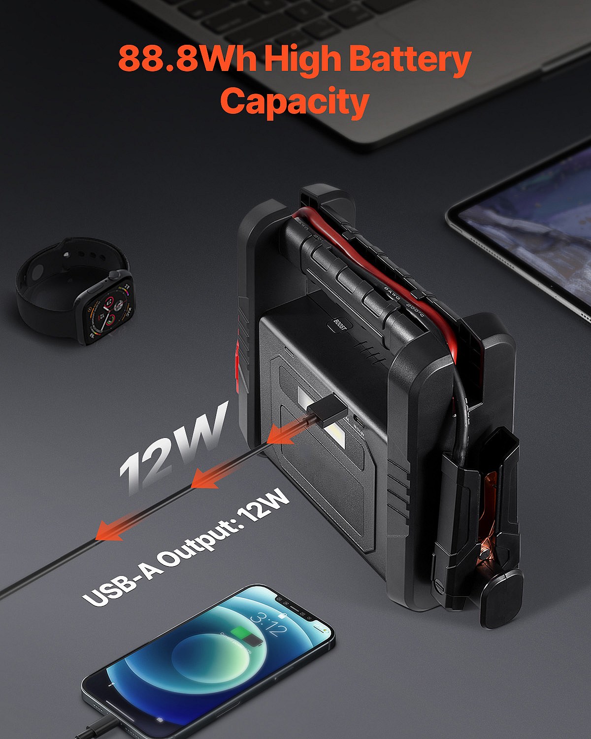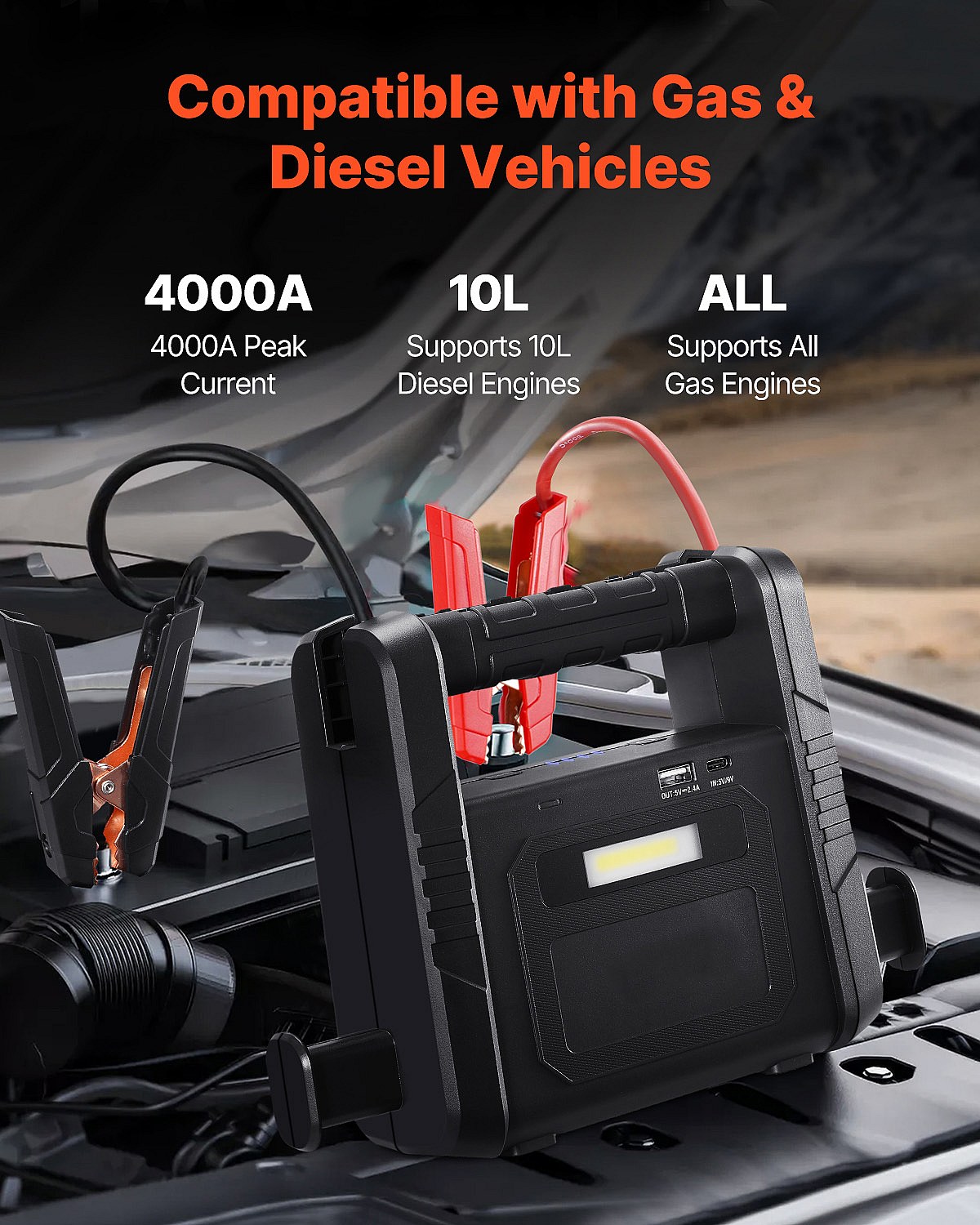 Booster Bateria Carro SucceBuy, 4000 A, Arrancador de Bateria Carro Portátil com Cabos de Arranque, Ecrã LCD, Luz LED, Caixa de Arranque de Lítio