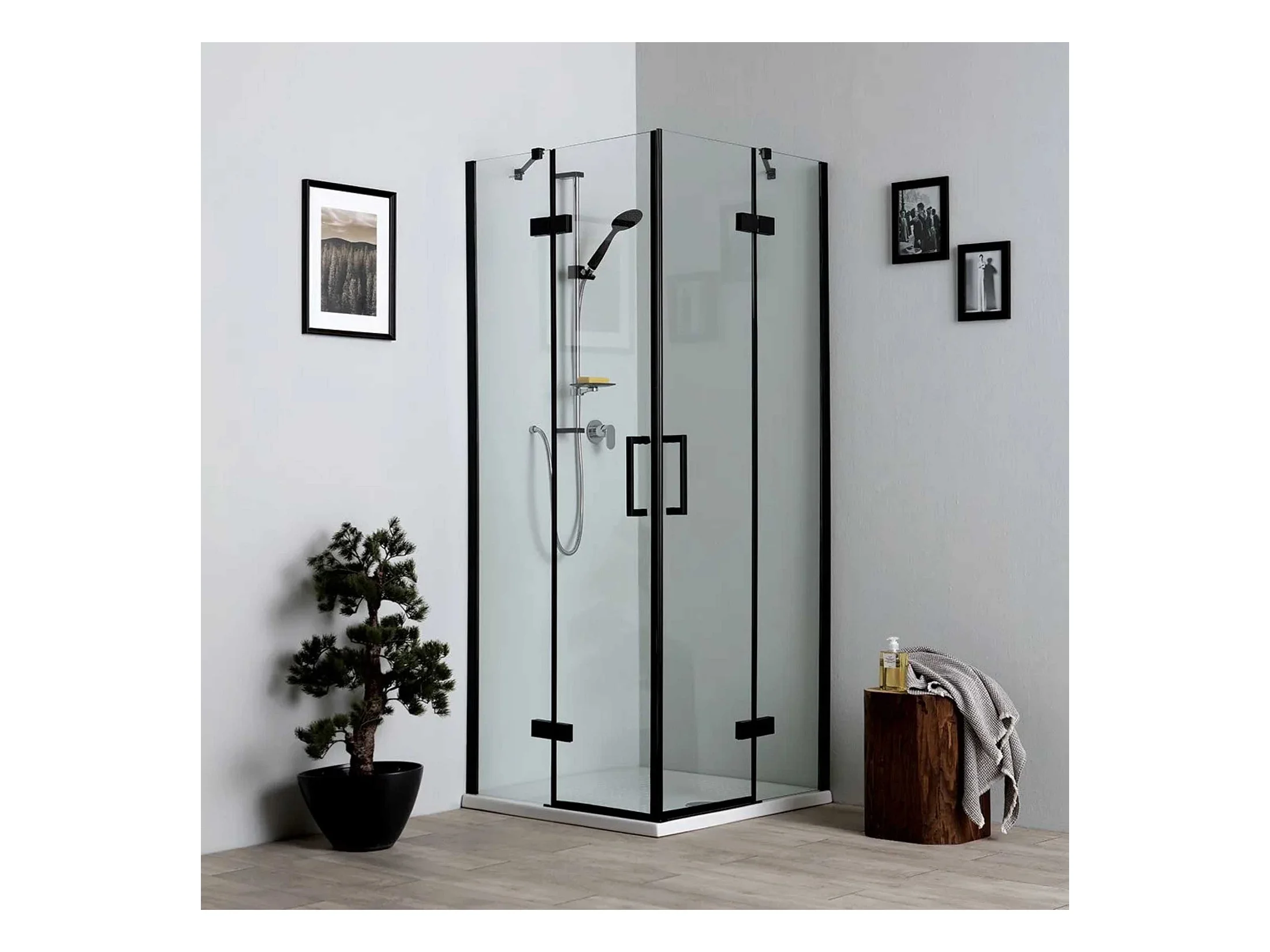 Box de casa de banho moderno preto "Leões" sem perfis com 2 portas de vidro magnético 70x70 190h