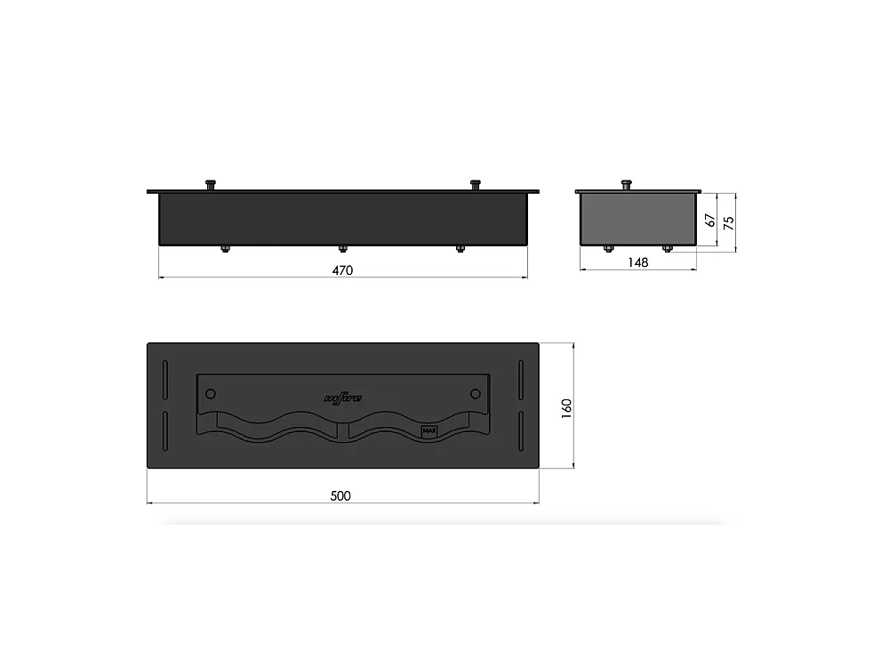 Queimador de bioetanol preto embutido de 50 cm em aço inoxidável, 1 lt