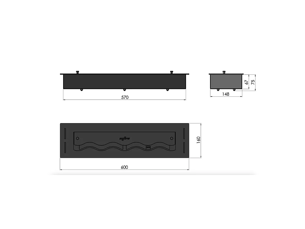 Queimador de inserção de bioetanol preto embutido de 1,2 litros em aço inoxidável 60cm