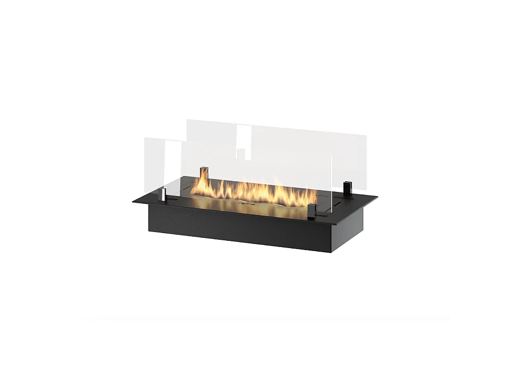 Queimador de bioetanol 60cm em aço inoxidável preto, embutido ou independente, 1 litro com copos incluídos