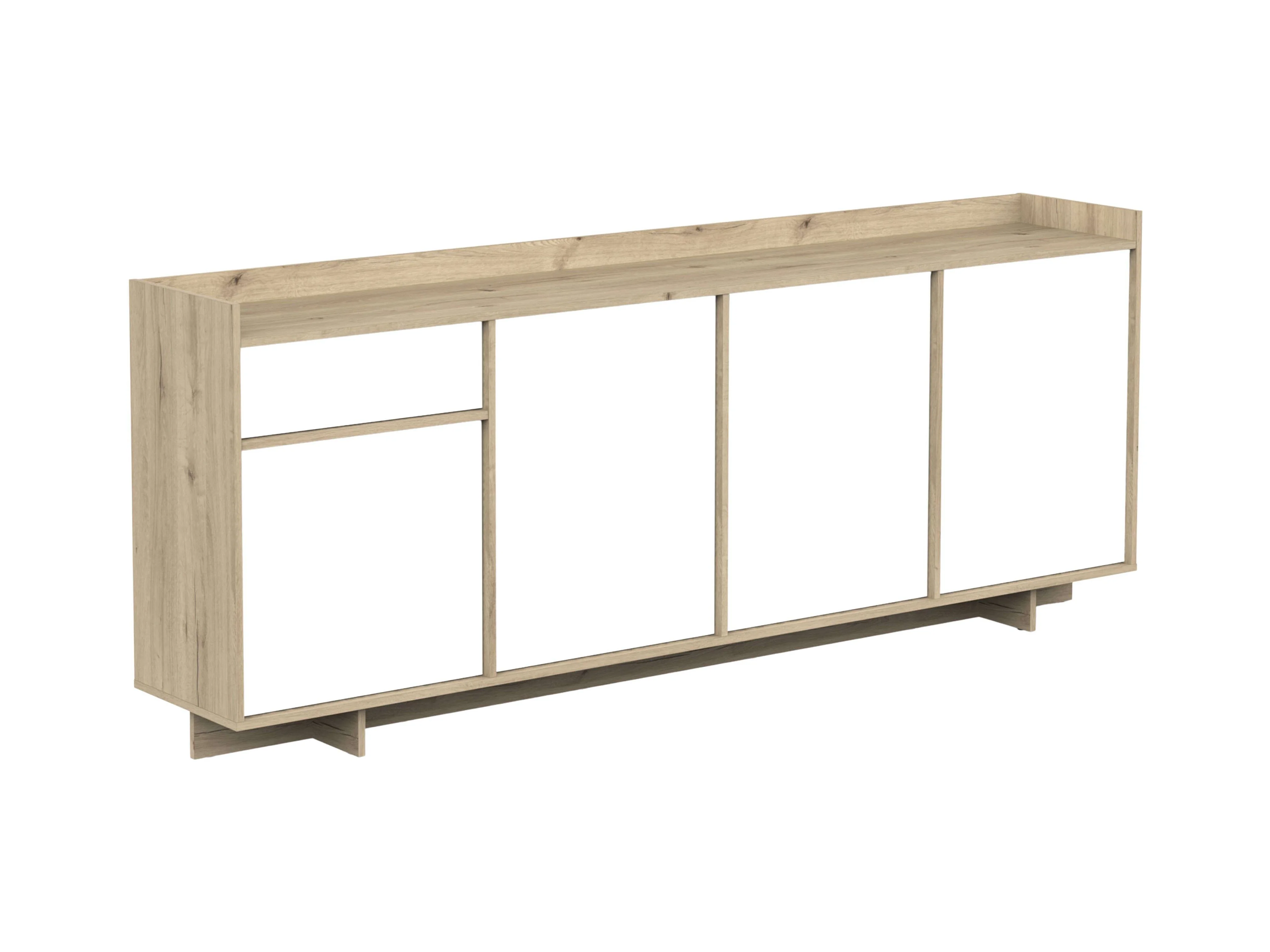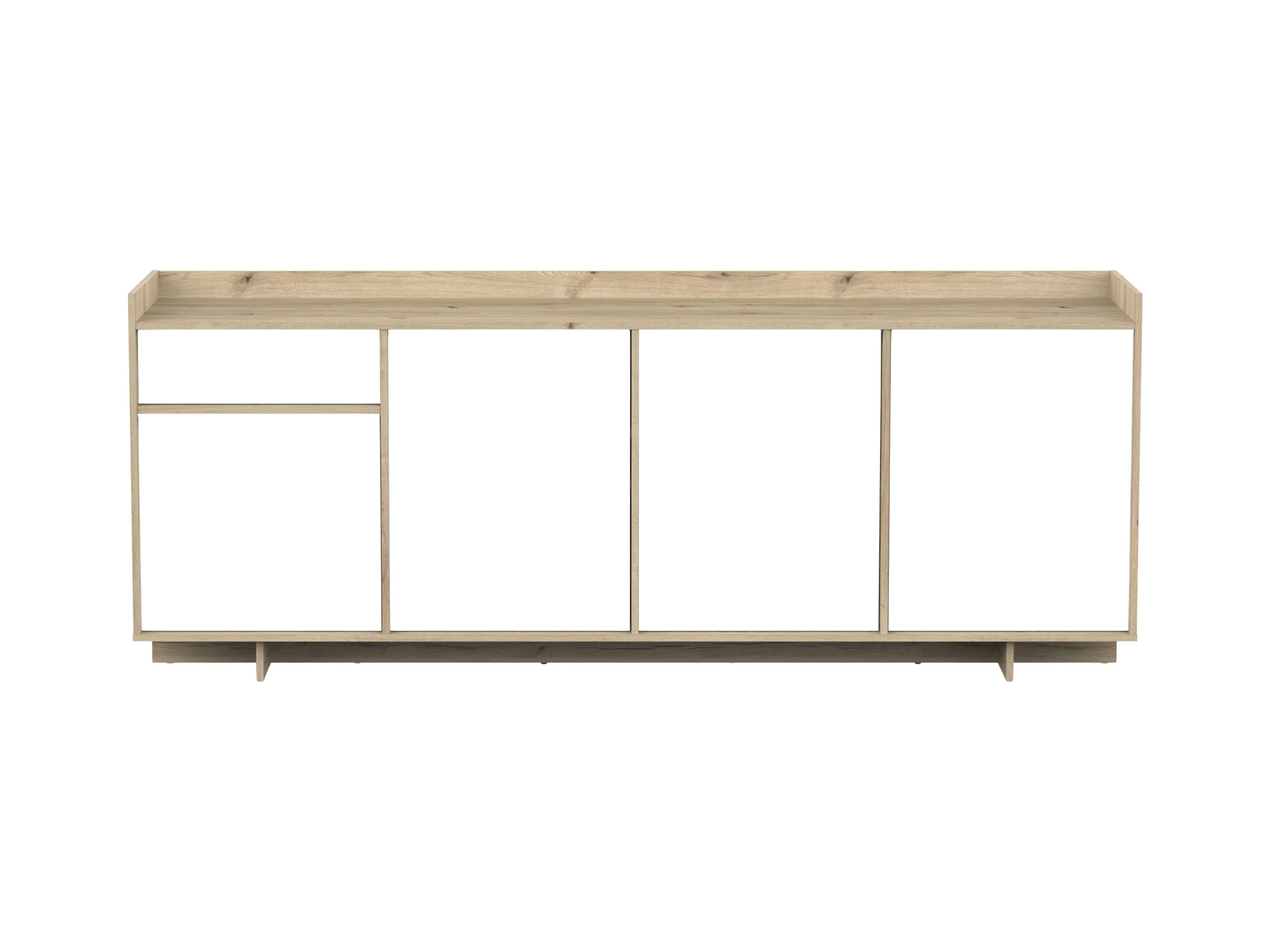 Bufê em Carvalho Artesanal e Branco 210 cm Moderno com 1 Gaveta e 4 Portas