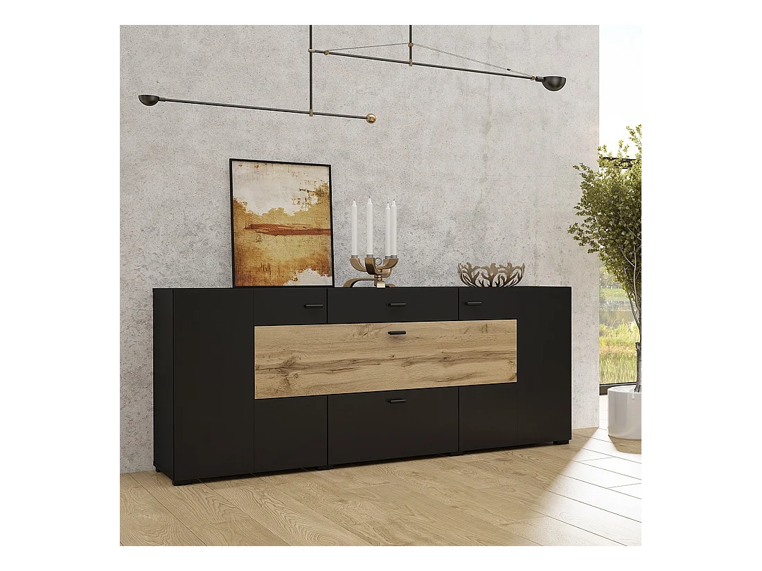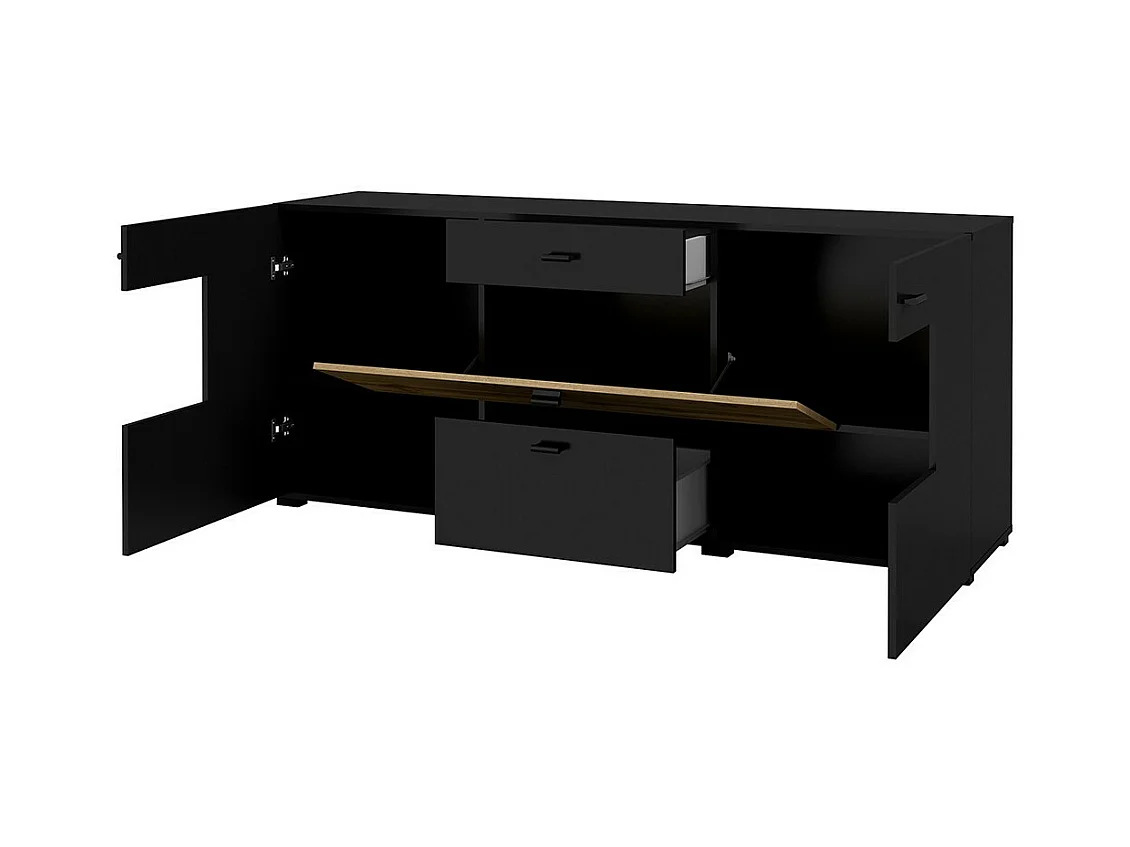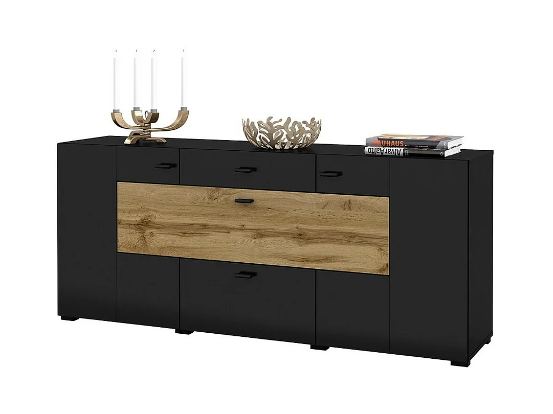 Buffet 165cm coleção KOBEE com 3 portas e 2 gavetas. Cor preta e carvalho.